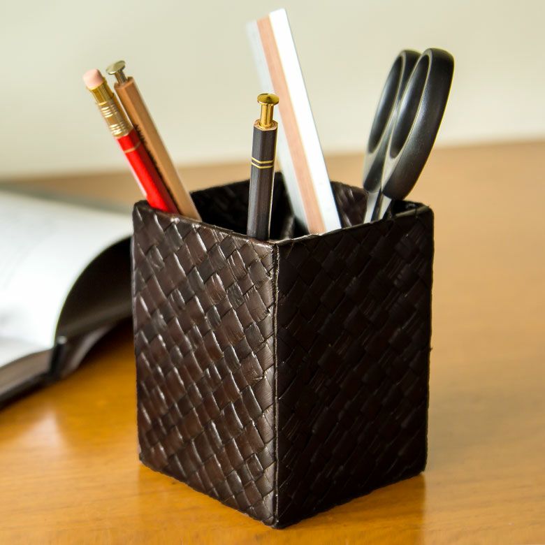 プランターカバー 卓上 収納 収納ケース 小物入れ レザー ハワイ バスケット カトラリーケース ペンホルダー 新生活 リビング 寝室 ダイニング 食卓 結婚式 プレゼント ギフト お祝い アジアンバスケット ペン立て パンダン ダークブラウン ナチュラル 約 W10 D 10 H 12.5cm 卓上ゴミ箱 ダストボックス デスクゴミ箱 ゴミ箱 お箸立て 籠 カゴ 収納バスケット バリ 雑貨 バリ雑貨 デスク おしゃれ かわいい 北欧 アジアン雑貨 アジアン 雑貨 [s-117]