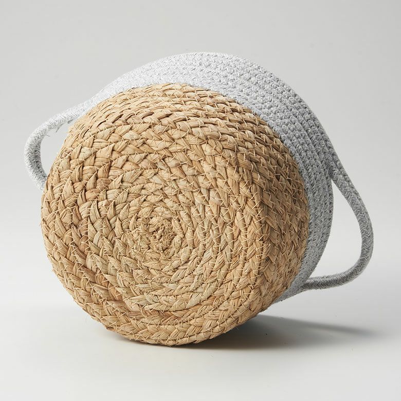 ロープバスケット 自立 ラウンド 小物収納 小物入れ 取っ手 コットンロープ リビング収納 おもちゃ入れ ランドリー タオル収納 リビング ダイニング キッチン 玄関 子供部屋 洗面所 バスケット コットンロープ ラッシュ製 持ち手付き バイカラー Sサイズ 約 W 22 × D 22 × H 14 cm かごバスケット 収納 かご 籠 丸 円形 丸型 プランターカバー 鉢カバー 5号鉢対応 インテリア おしゃれ 北欧 観葉植物 アジアン 雑貨 アジアン雑貨 [67119]