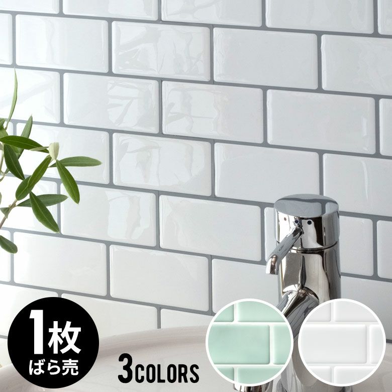 タイル シールタイル 立体 3Dシート 壁紙 貼る DIY リメイク サブウェイタイルシール Aタイプ 1枚入り メトロ モザイクタイル ホワイト グレー ミスト 白 灰色 グリーン 正方形シート [66918]【 タイルシール 台所 キッチン 洗面所 トイレ 鏡 水回り 防水 ウォールステッカー デコレーション リメイク カフェ風 レトロ 】