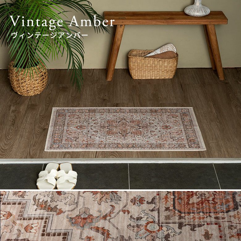 ヴィンテージラグの風合いを“手軽に・清潔に”楽しめるウォッシャブルラグマット ビンテージ風のかすれを再現したペルシャデザインのおしゃれな玄関マット Lumiera /約50x80cm 洗濯機で丸洗いOK 薄手で簡単お掃除&軽くて畳めてラクラク収納 床暖ホットカーペット対応のオールシーズンOK [84407]