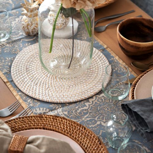 テーブルウェア マット タペストリー テレビ台 棚 タンス カフェ ホテル ランチ ディナー テーブルコーディネート モダン 和室 リビング 寝室 パーティ 新生活 プレゼント ギフト お祝い テーブルランナー テーブルクロス アラベスク模様 天然素材 ウォーターヒヤシンス 約 W 150cm D 36cm H 0.3cm テーブルライナー テーブルカバー ダイニングテーブル 緑 グリーン ピンク おしゃれ 可愛い 装飾 和モダン エスニック 北欧 リゾート 南国 アジアン [10827]