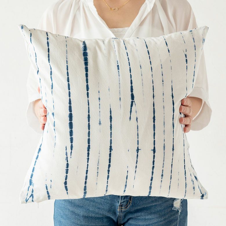 夏仕様 45cm×45cm ファブリック ピロークッション リビング 【メール便対応】 クッションカバー クッション カバー タイダイ インディゴ ブルー 45×45cm 正方形 [34504]【 絞り染め 洗える 夏 春 青 波 海 コットン 綿 ソファ おしゃれ インテリア 北欧 サーフ ビーチリゾート 海系 マリン リゾート コースタル アジアン 】