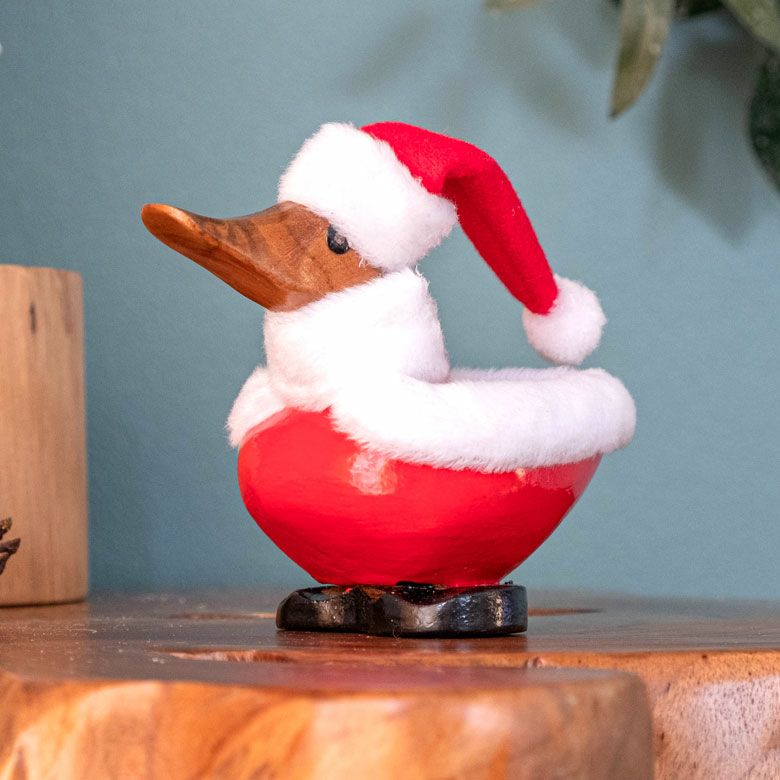 Christmas 装飾 グッズ ディスプレイ ハンドメイド マスコット オブジェ クリスマス Xmas 飾り デコレーション あひる アヒル ダック duck 約 W 7 × D 11 × H 10 [13910]【 サンタ サンタクロース フィギュア 人形 デコレーション 雑貨 置物 木製 ウッド インテリア ギフト プレゼント おしゃれ 北欧 ナチュラル バリ アジアン雑貨 】