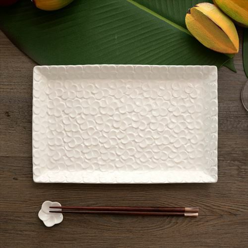 プレート 長方形 お刺身 魚皿 長皿 テーブルコーディネート 長角皿 プルメリアモチーフ Lサイズ 28cm×18cm ホワイト グリーン 陶器製 [pl4-66817 pl4-66818]【 食器 スクエアプレート 平皿 スクエア 角皿 焼き物皿 焼物皿 焼き鳥 焼き魚 長皿 陶器皿 和食器 おしゃれ キッチン雑貨 アジアン 雑貨 アジアン雑貨 】