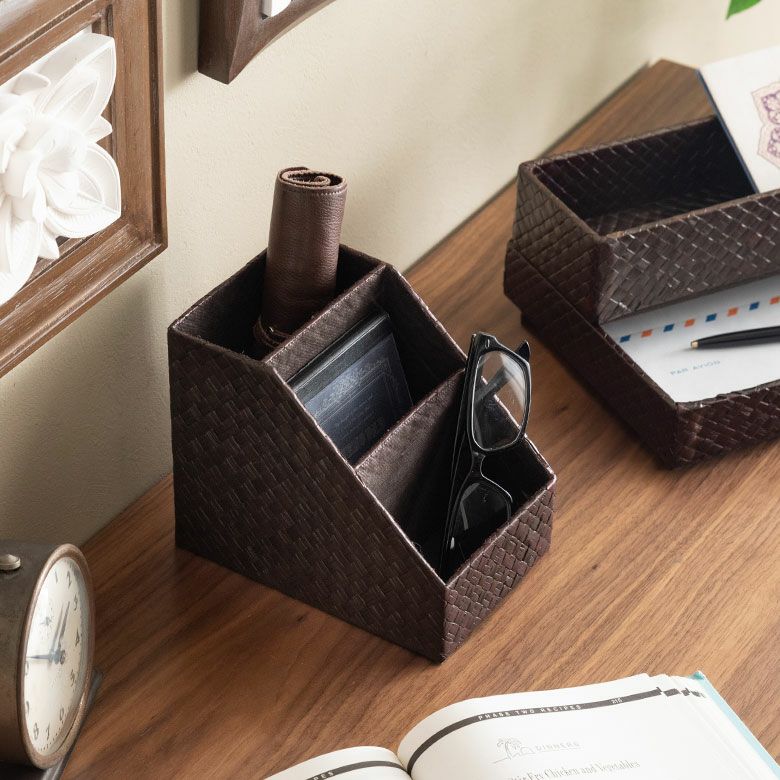リモコン立てやデスク収納まで使い方いろいろバリ島の人気アジアン雑貨 パンダン製マルチ収納スタンド 間仕切り3分割 2色展開 リモコンスタンド リモコン立て 小物入れ 収納バスケット バリ雑貨 アジアン雑貨 インテリア おしゃれ ペン立て リモコンラック リモコンホルダー リモコン入れ 小物いれ 収納かご 収納カゴ ハワイ [m-1172]