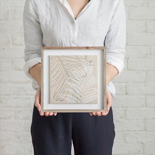 南国植物のイラストをプリントしたアートフレーム。 ヤシの葉をモチーフにしたリネンキャンバスのアートフレーム(66050)【アート 壁掛け 絵 ボタニカル ウォールデコレーション リーフモチーフ 壁飾り 絵画 アートプリント リーフパネル ウォールアート ウォールパネル おしゃれ リゾート ハワイ パーム ソテツ リネン 麻】