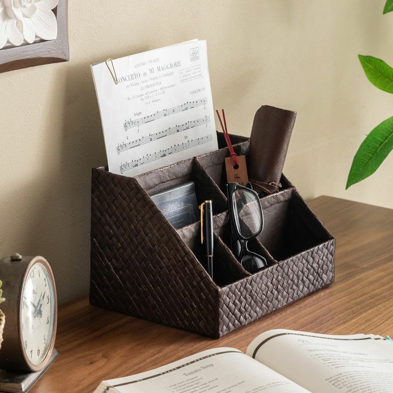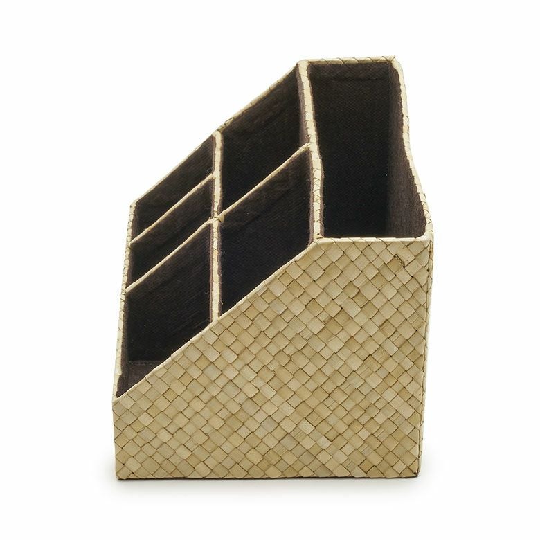 リモコン立てやデスク収納まで使い方いろいろバリ島の人気アジアン雑貨 パンダン製マルチ収納スタンド 間仕切り6分割 2色展開 リモコンスタンド リモコン立て 小物入れ バリ雑貨 アジアン雑貨 インテリア おしゃれ 収納 ナチュラル リモコン入れ リモコンホルダー ペン立て リモコンラック 卓上 デスク アジア雑貨 ハワイ [l-1172]