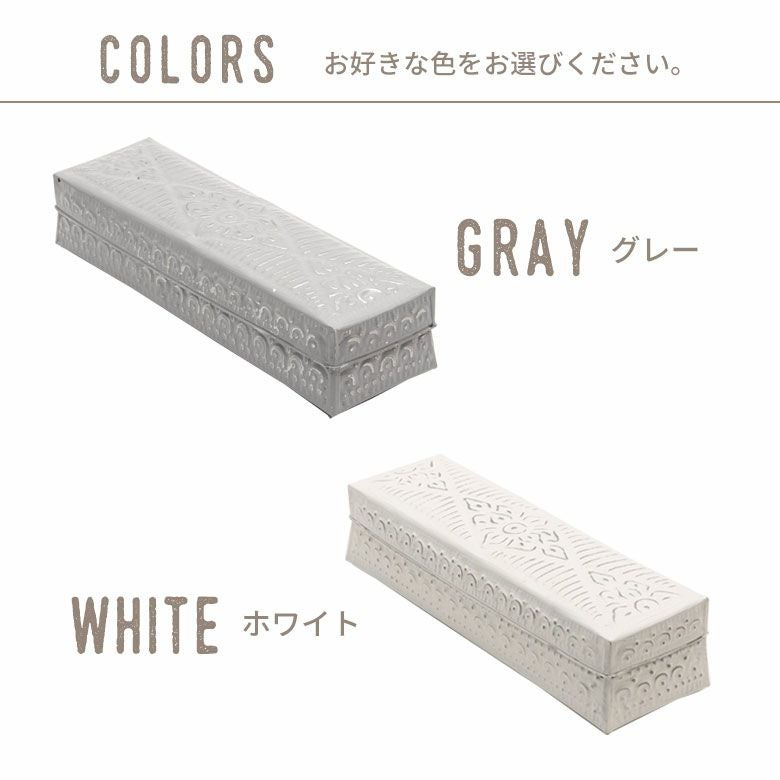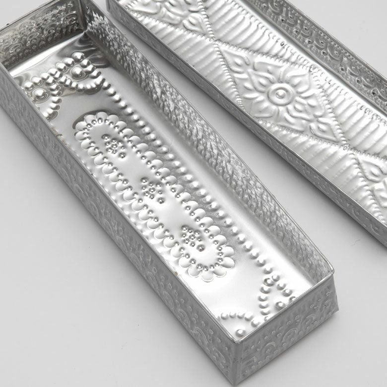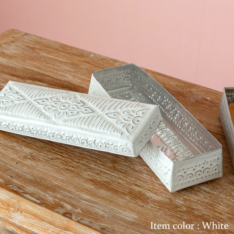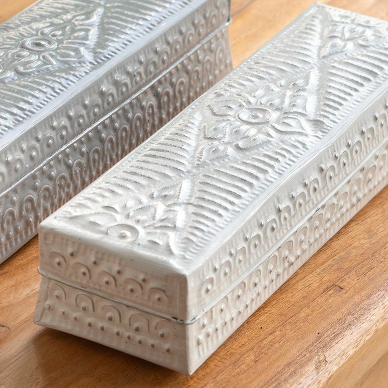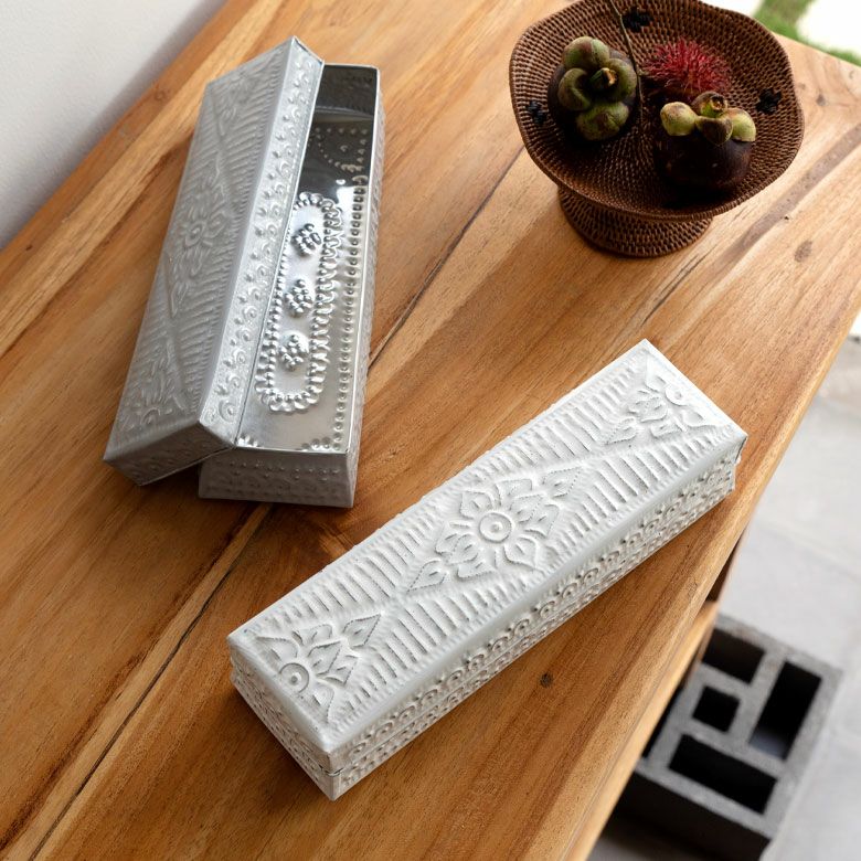 小物入れ 小物収納 アクセサリーケース 小箱 リビング収納 小物入れ 蓋付き ソカシ アルミ製 型押しデコレーション柄 長方形 長さ約27cm × 幅約8cm 2色展開[13861]【 小物ケース 収納ケース 蓋付きケース カトラリー入れ 整理整頓 蓋付き小物入れ 収納ボックス 収納BOX ギフトボックス アジアン雑貨 】