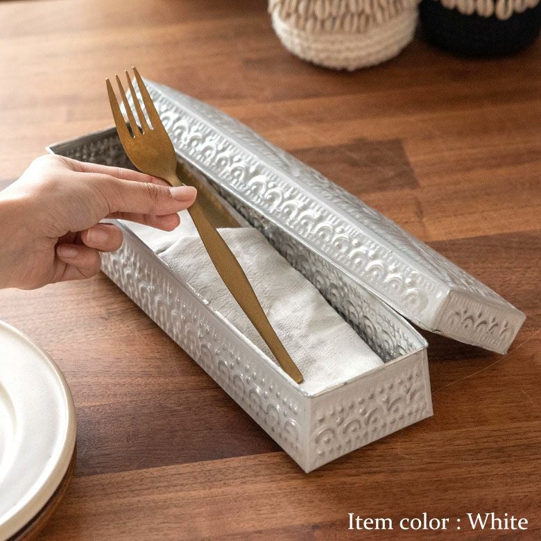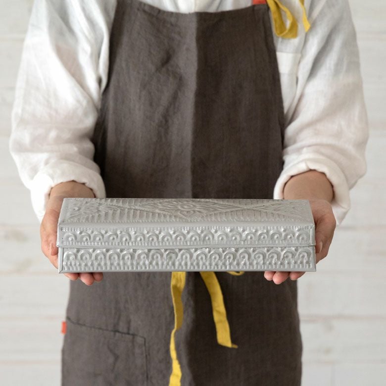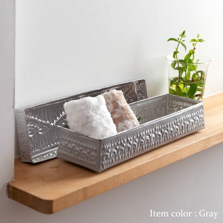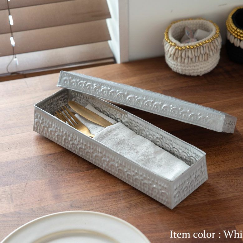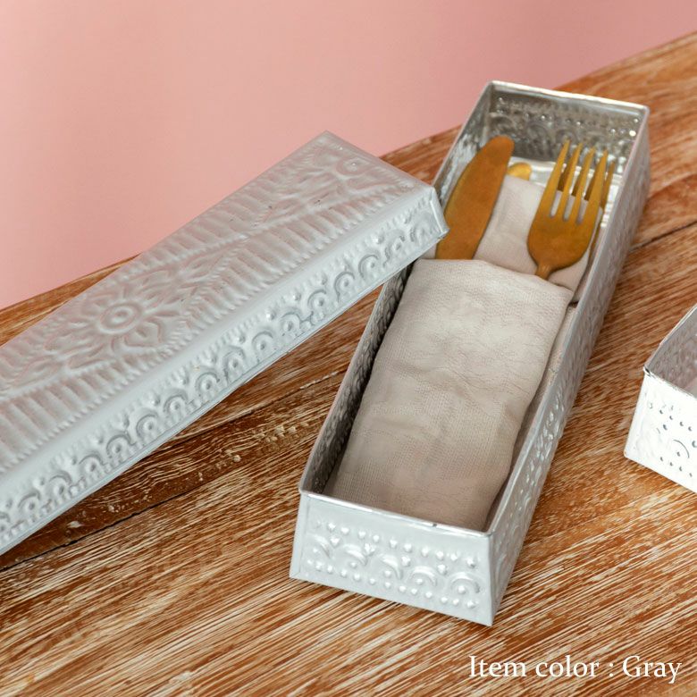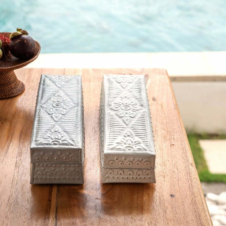 小物入れ 小物収納 アクセサリーケース 小箱 リビング収納 小物入れ 蓋付き ソカシ アルミ製 型押しデコレーション柄 長方形 長さ約27cm × 幅約8cm 2色展開[13861]【 小物ケース 収納ケース 蓋付きケース カトラリー入れ 整理整頓 蓋付き小物入れ 収納ボックス 収納BOX ギフトボックス アジアン雑貨 】
