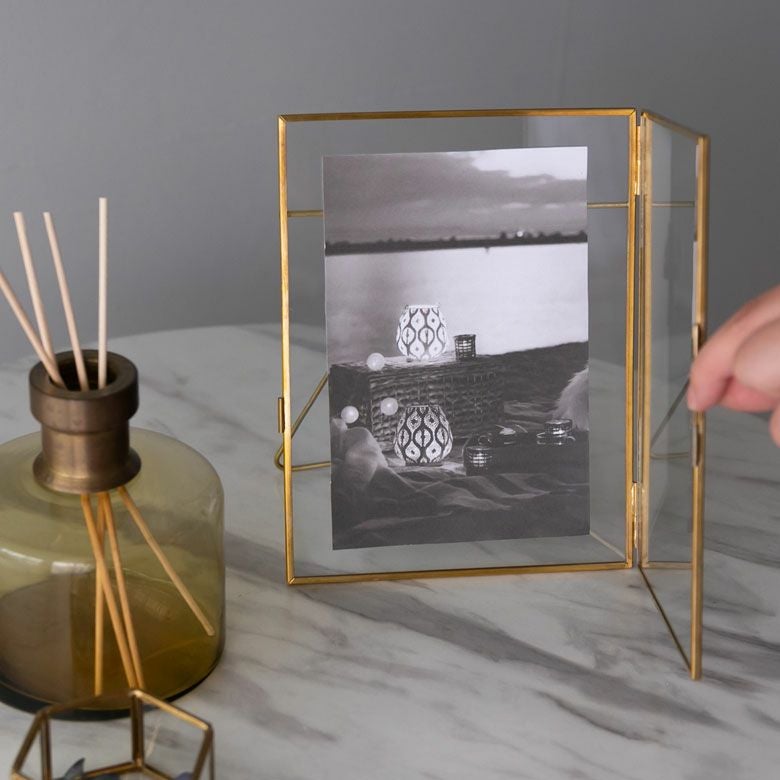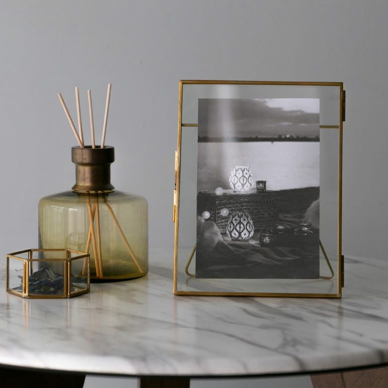 写真フレーム 縦置き 縦 クリア 透明 ゴールド プレゼント フォトフレーム 2L判 大判 縦置き ガラスと真鍮 ガラスケース アクセサリー収納 [67051]【 写真たて 写真入れ フォトスタンド フォトディスプレイ 写真 メニュー スタンド ヴィンテージ 風 ビンテージ 風 アンティーク 風 おしゃれ 韓国 韓国インテリア アジアン 雑貨 】