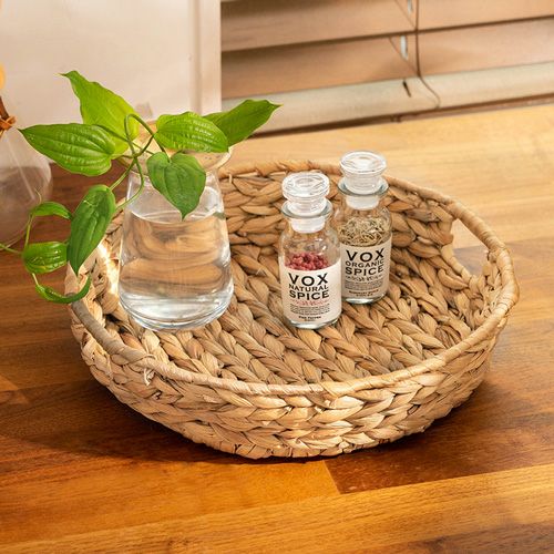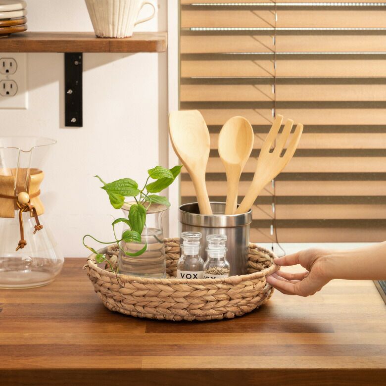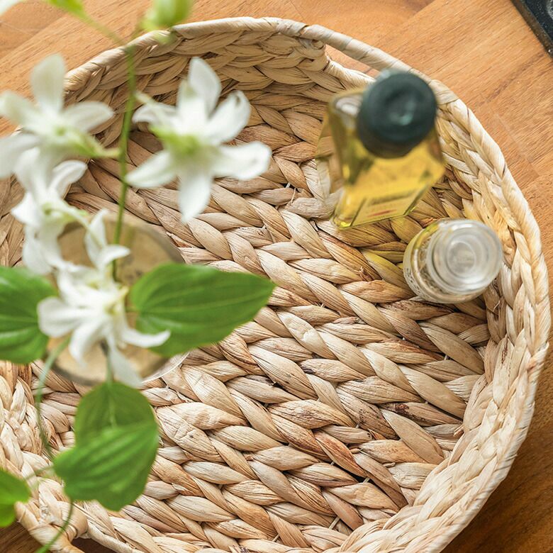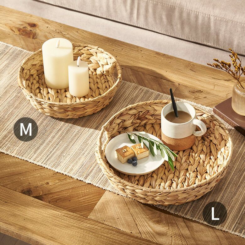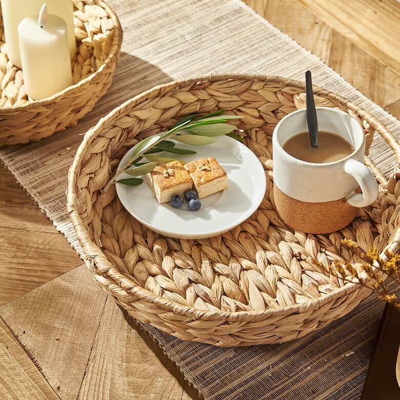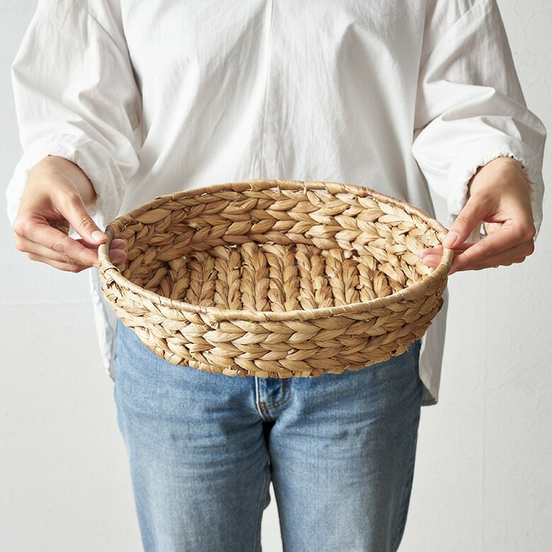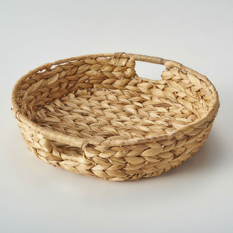 キッチン収納 アメニティ収納 コスメボックス コスメ収納 トレイ 円形 ラウンド 浅型 Lサイズ ウォーターヒヤシンス 持ち手付き 約W30 × D30 × H7cm ラウンドトレー 丸盆 お盆 キッチントレー ベーカリーバスケット パントレー パントレイ パン用バスケット パンバスケット おしゃれ 北欧 韓国 インテリア アジアン雑貨 [51332]