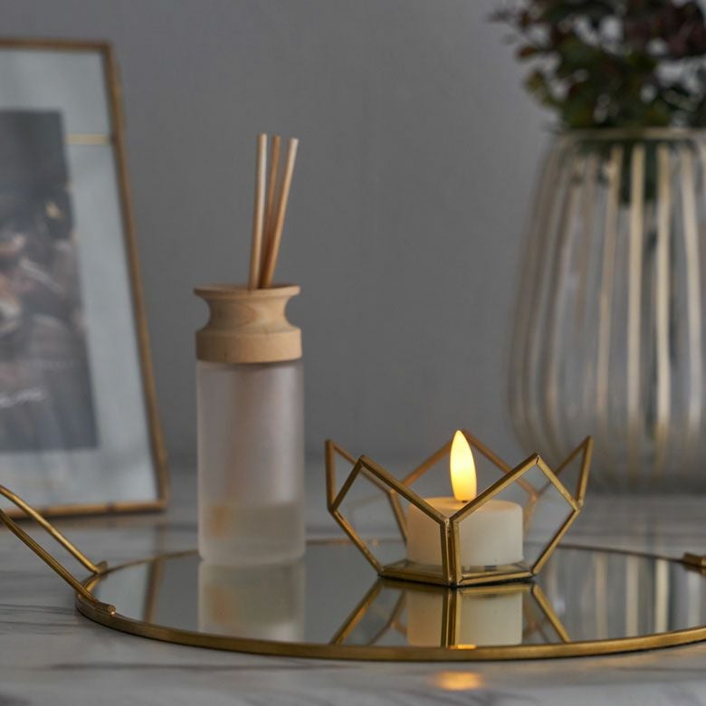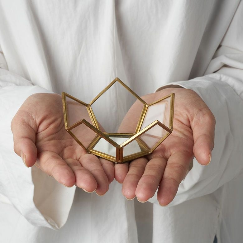 アクセサリー収納 アクセサリー入れ 小物収納 見せる収納 什器 ピアス 時計 イヤリング ネックレス 置き ポプリ パワーストーン コイン 鍵 店舗 カフェ レストラン ギフト プレゼント キャンドルホルダー キャンドル ホルダー ミラー 鏡 蓮 ガラス 真鍮 ゴールド 約 W 9cm D 9cm H 6cm アクセサリートレイ アクセサリートレー アクセサリー 小物入れ 収納 デコレーション ディスプレイ おしゃれ 北欧 雑貨 アジアン [67126]