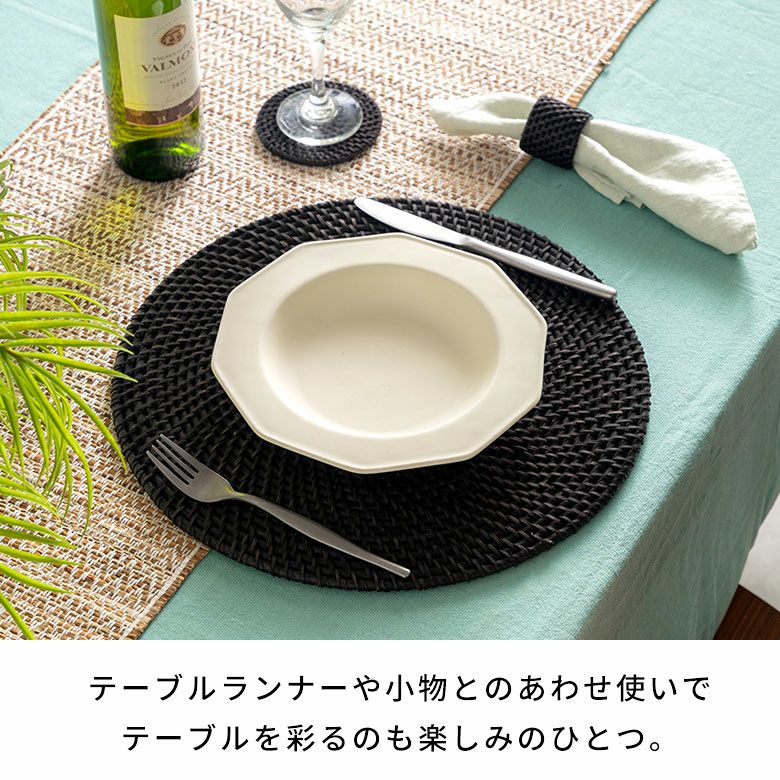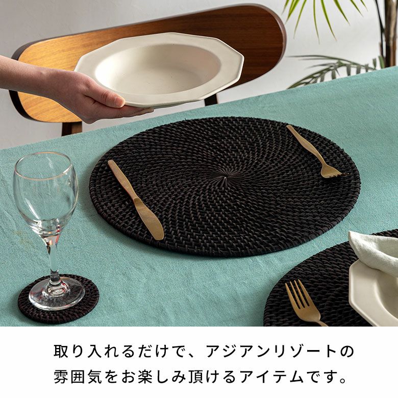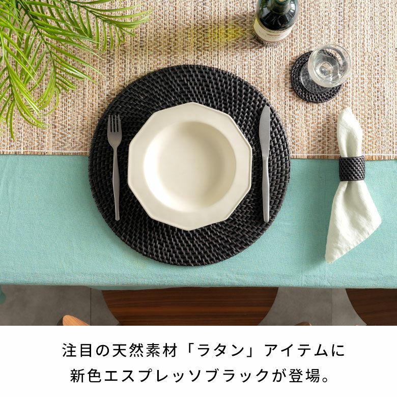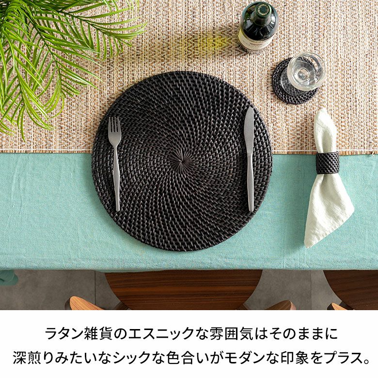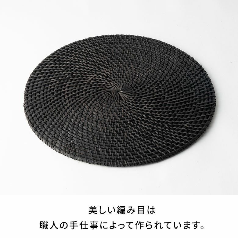 テーブル小物 テーブル装飾 パーティー クリスマス ハロウィン レストラン カフェ 店舗用 テーブルコーディネート テーブルセッティング テーブルコーデ 什器 撮影 ギフト プレゼント ランチョンマット ラタン 籐 ブラック ラウンド 円形 プレースマット リバーシブル 約 W 38cm D 38cm H 1cm プレイスマット テーブルマット ランチマット テーブルウエア ダイニング キッチン キッチン雑貨 おしゃれ 北欧 リゾート 雑貨 インテリア アジアン [14108]