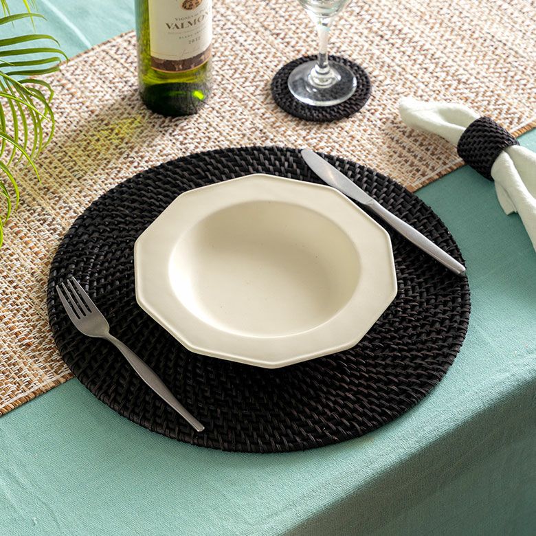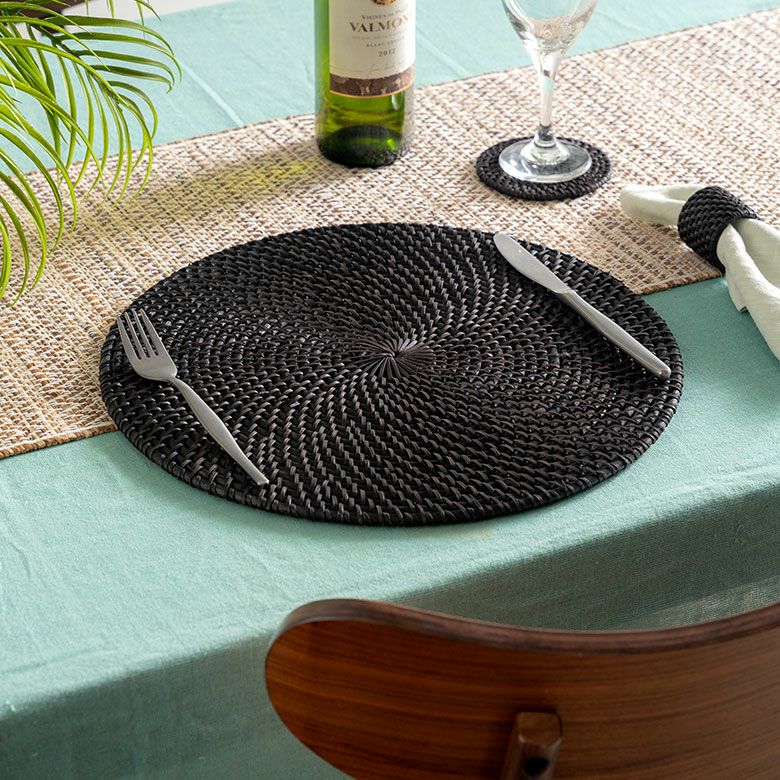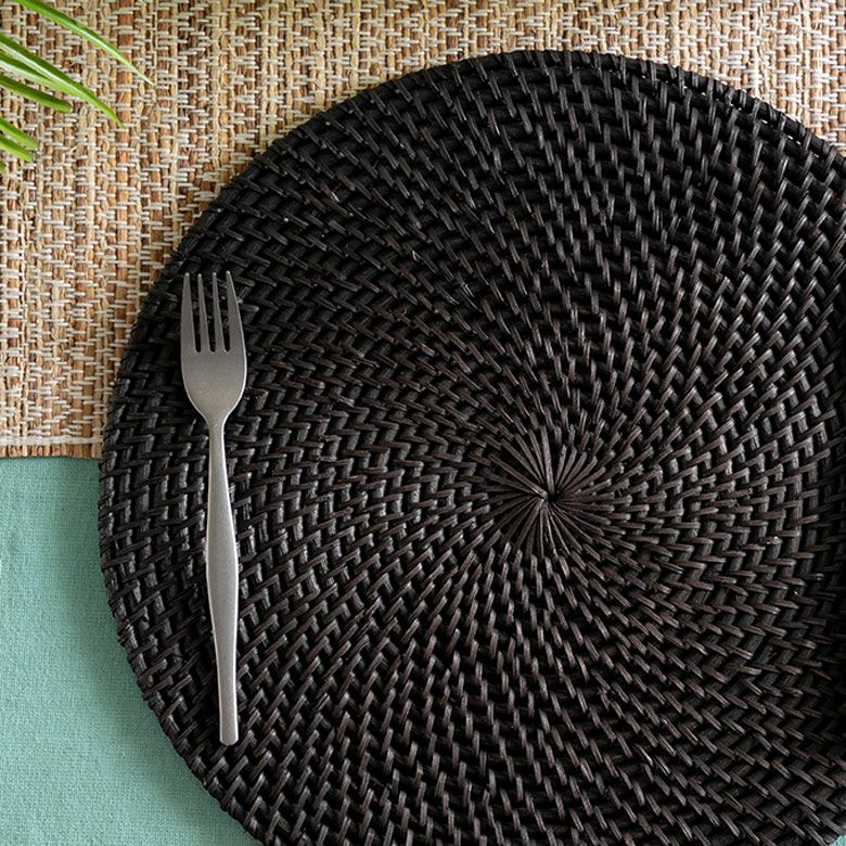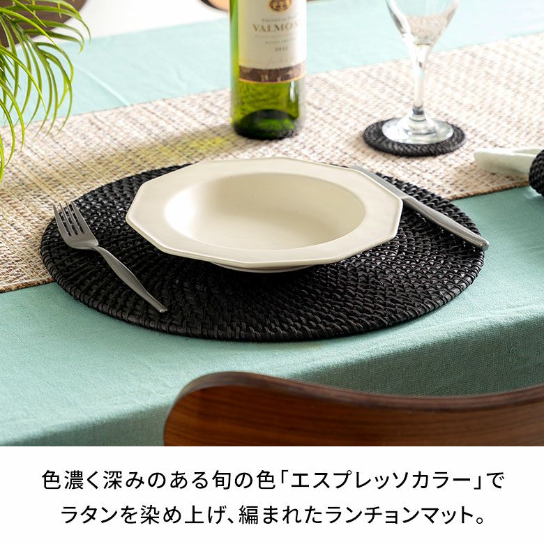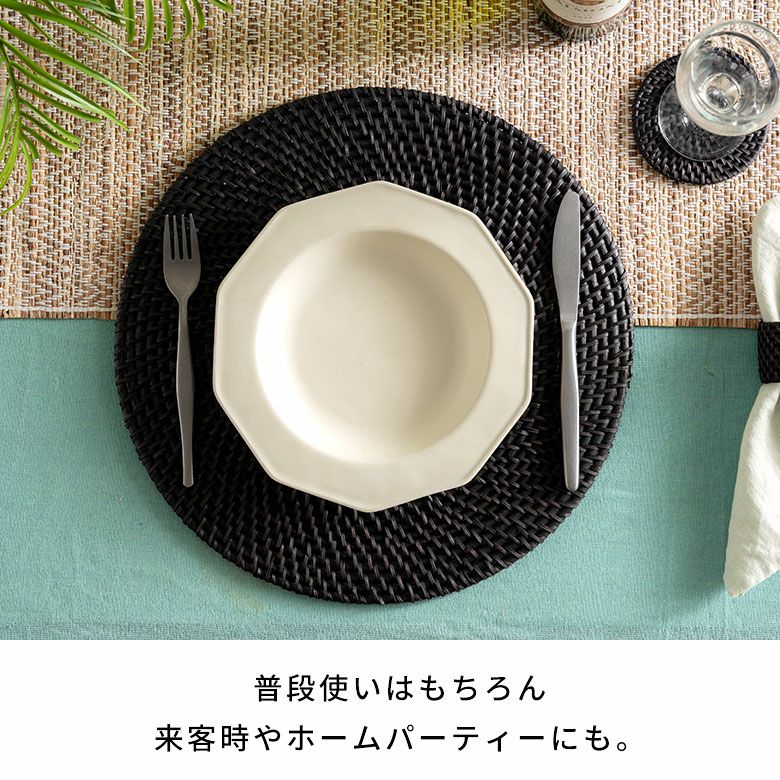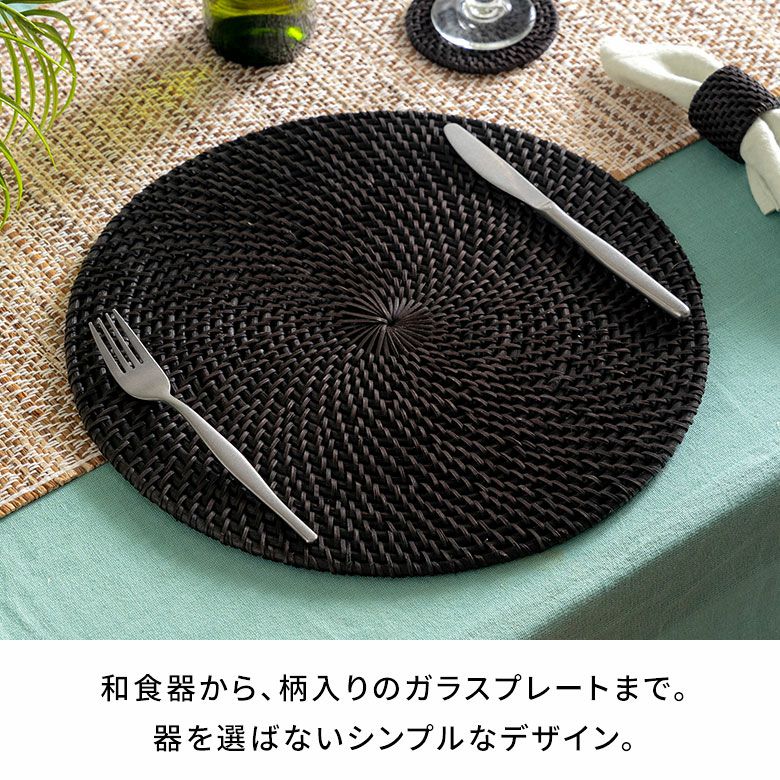テーブル小物 テーブル装飾 パーティー クリスマス ハロウィン レストラン カフェ 店舗用 テーブルコーディネート テーブルセッティング テーブルコーデ 什器 撮影 ギフト プレゼント ランチョンマット ラタン 籐 ブラック ラウンド 円形 プレースマット リバーシブル 約 W 38cm D 38cm H 1cm プレイスマット テーブルマット ランチマット テーブルウエア ダイニング キッチン キッチン雑貨 おしゃれ 北欧 リゾート 雑貨 インテリア アジアン [14108]