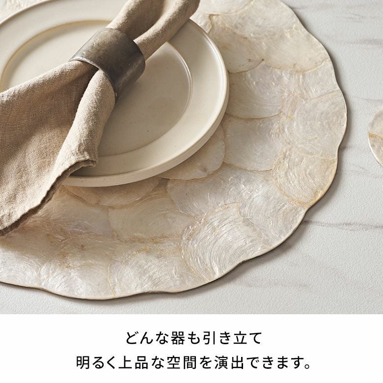 テーブル小物 テーブル装飾 パーティー クリスマス ハロウィン レストラン カフェ 店舗用 テーブルコーディネート テーブルセッティング テーブルコーデ 什器 撮影 ギフト プレゼント ランチョンマット カピスシェル シェル 貝 ラウンド 円型 プレースマット リバーシブル 約 W 38cm D 38cm H 1cm プレイスマット テーブルマット ランチマット テーブルウエア ダイニング キッチン キッチン雑貨 おしゃれ 北欧 リゾート 雑貨 インテリア アジアン [14114]
