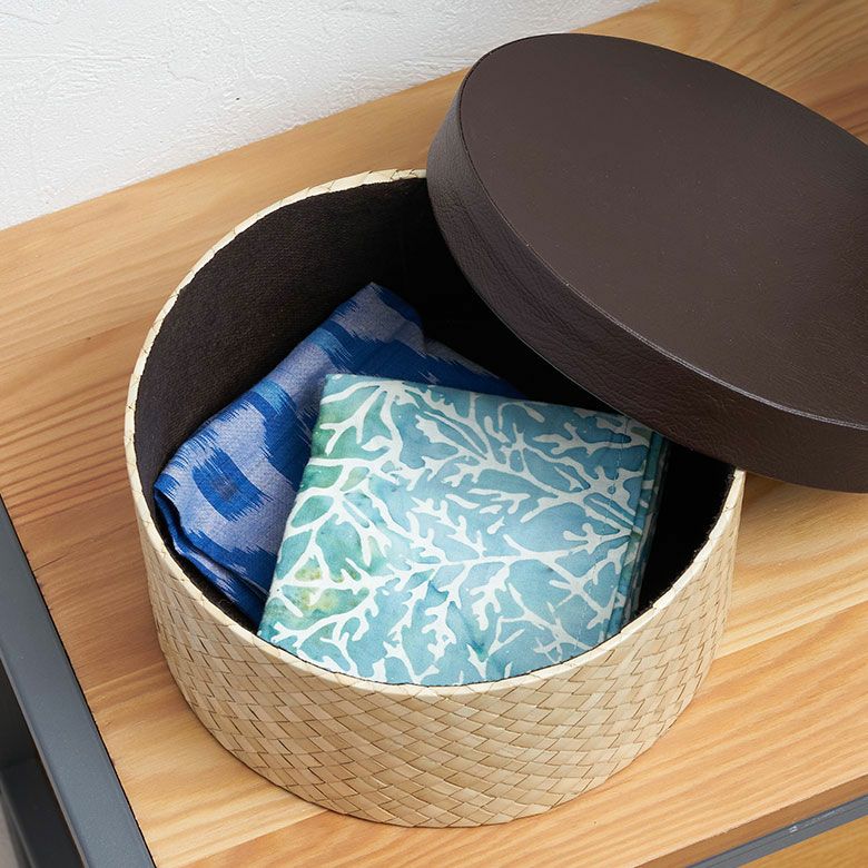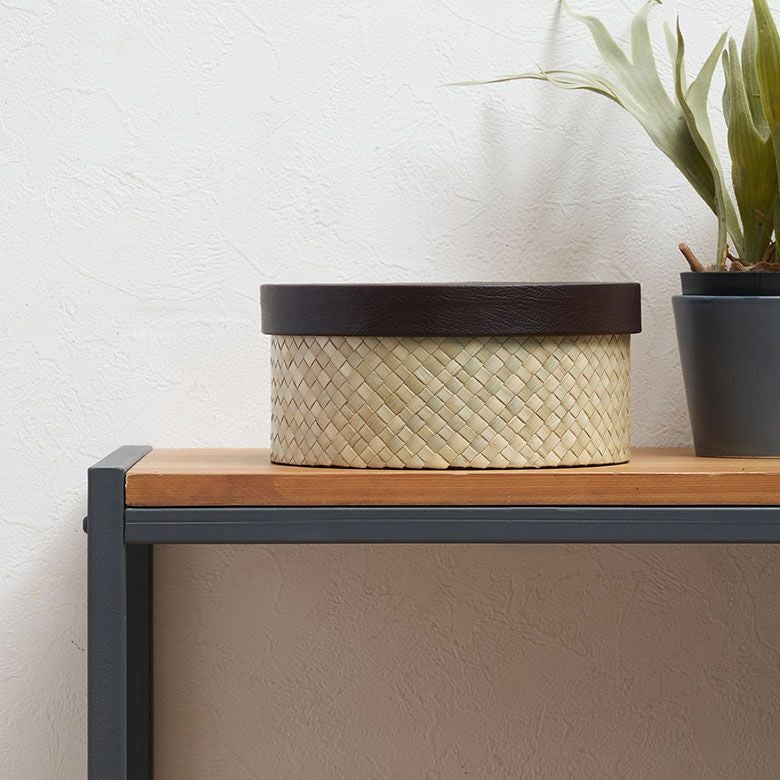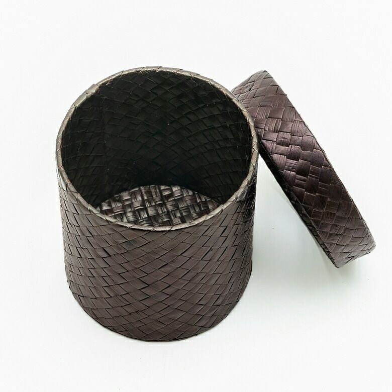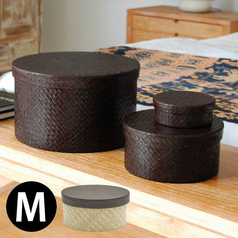 レザーのような編み目のアジアンボックス。おしゃれに小物を収納するバリ島の人気アジアン雑貨 パンダン製フタ付きラウンドボックス Mサイズ 2色展開 小物入れ 収納ボックス フタ付 整理ボックス 収納箱 インテリアボックス おしゃれ収納 バリ 雑貨 アジアン雑貨 バリ雑貨 入れ物 ナチュラル雑貨 蓋つき ふた付き 収納ケース 南国リゾート ハワイ [pb-117]