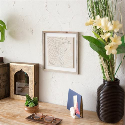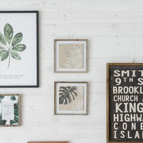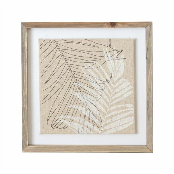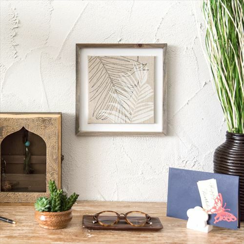 南国植物のイラストをプリントしたアートフレーム。 ヤシの葉をモチーフにしたリネンキャンバスのアートフレーム(66050)【アート 壁掛け 絵 ボタニカル ウォールデコレーション リーフモチーフ 壁飾り 絵画 アートプリント リーフパネル ウォールアート ウォールパネル おしゃれ リゾート ハワイ パーム ソテツ リネン 麻】