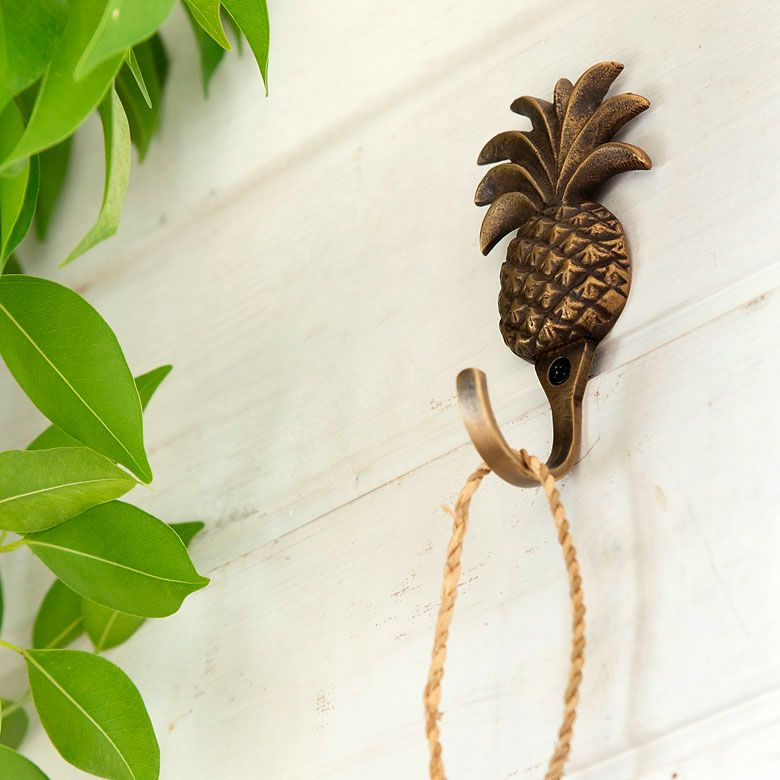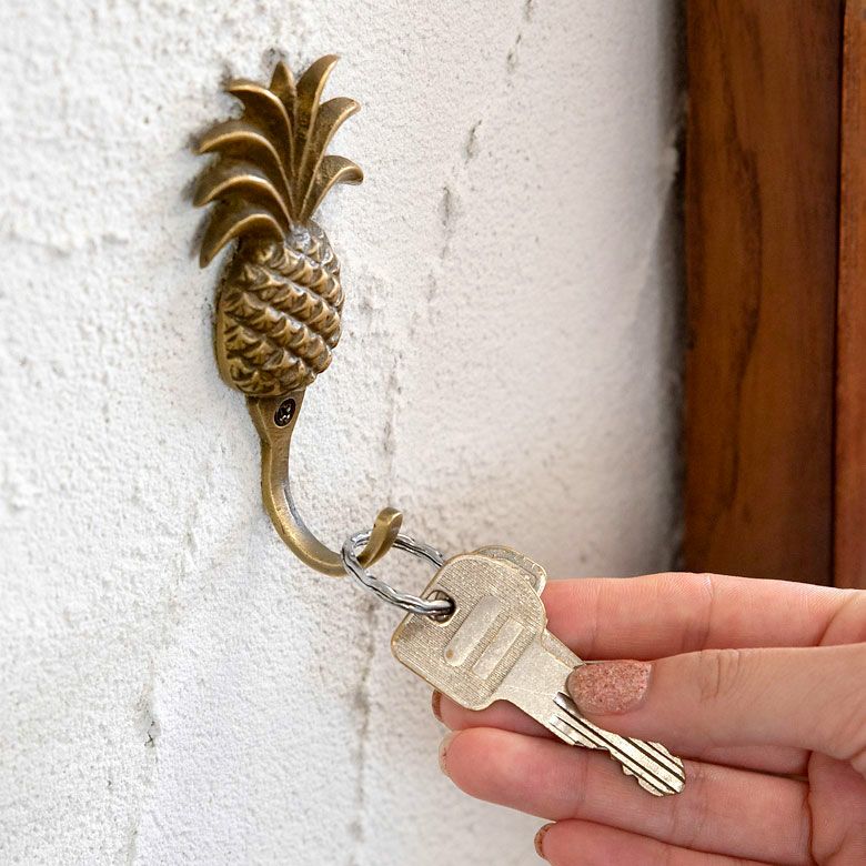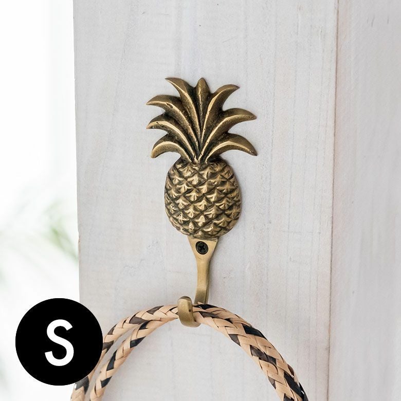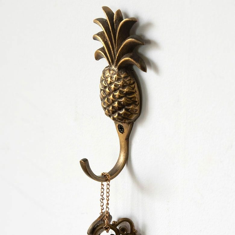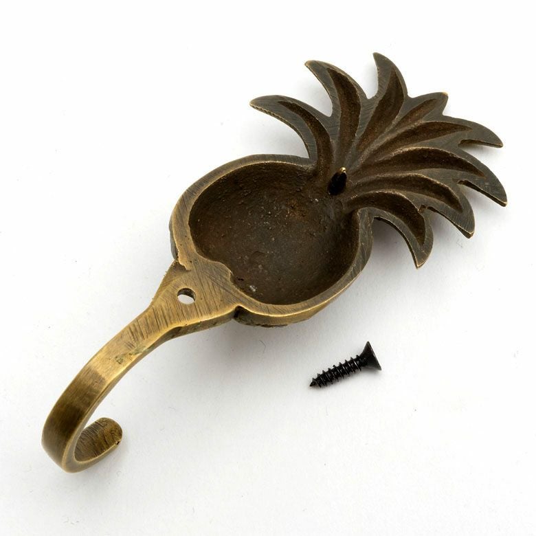 フック 壁掛け 引掛け ひっかけ 壁付け 壁面 小さい ミニ フック パイナップル型 アンティーク風 真鍮製 木ネジ付き 縦約9.5cm [13507] 【 壁掛けフック 壁フック ウォールフック シングルフック ブロンズ アイアン 洗面所 トイレ ドア 壁掛け収納 アジアン 雑貨 アジアン雑貨 南国リゾート ハワイ バリ島 北欧 】
