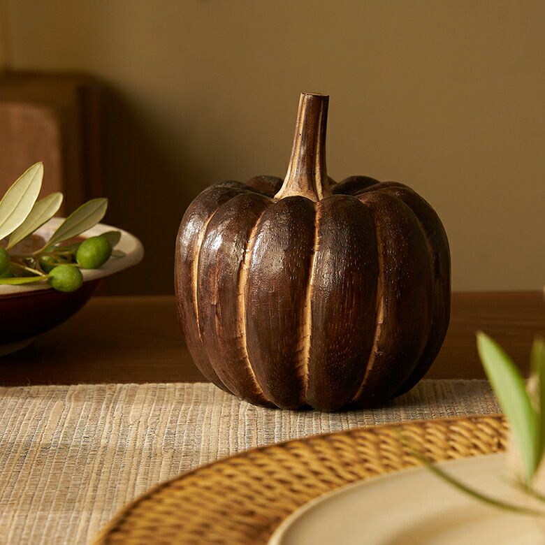 ハロウィングッズ オーナメント ウッドオブジェ 天然木 Xmas オブジェ パンプキン Mサイズ ベイクド ブラウン 木製 約 W 12 × D 10 × H 13 cm ハロウィン クリスマス デコレーション 飾り 装飾 ディスプレイ 置き物 置物 かぼちゃ カボチャ 南瓜 ハロウィンインテリア おしゃれ 北欧 リゾート アジアン 雑貨 アジアン雑貨 [14022]