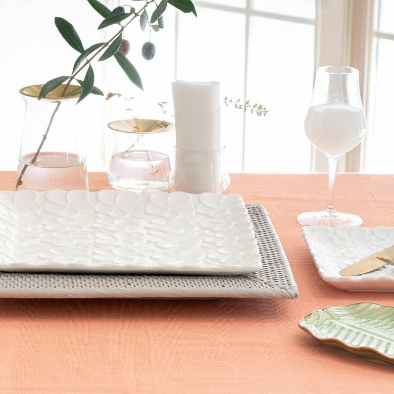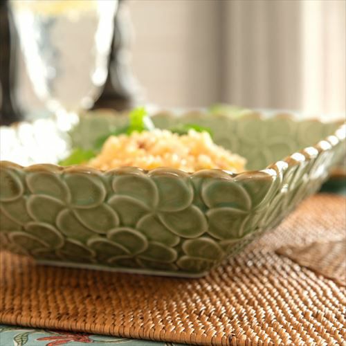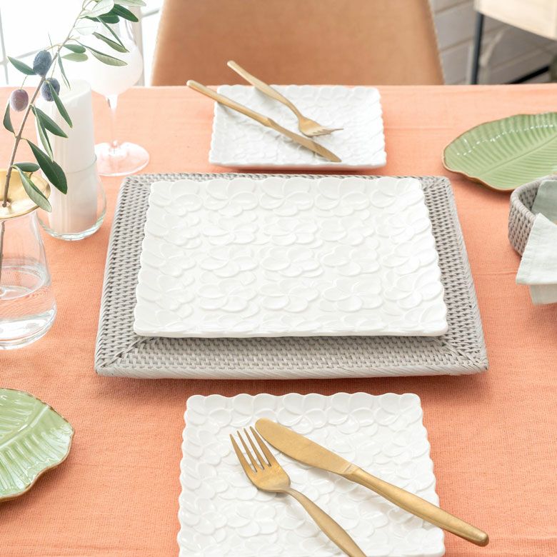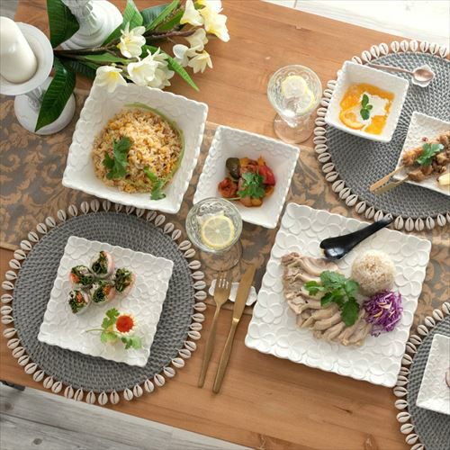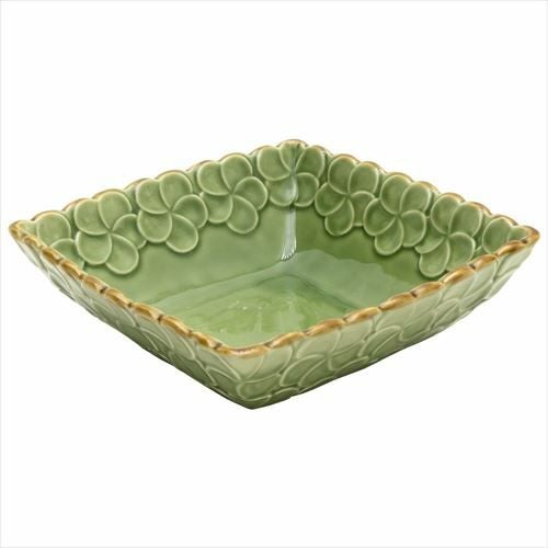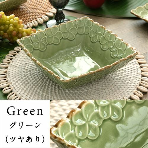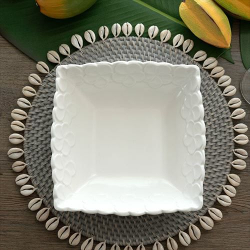 正角皿 深め リゾート テーブルコーディネート 深角皿 プルメリアモチーフ Lサイズ 21cm角 ホワイト グリーン 陶器製 [pl6-66821 pl6-66822]【 食器 スクエアボウル 深皿 スクエアプレート 角皿 角深皿 パスタ皿 おしゃれ キッチン雑貨 アジアン 雑貨 アジアン雑貨 】