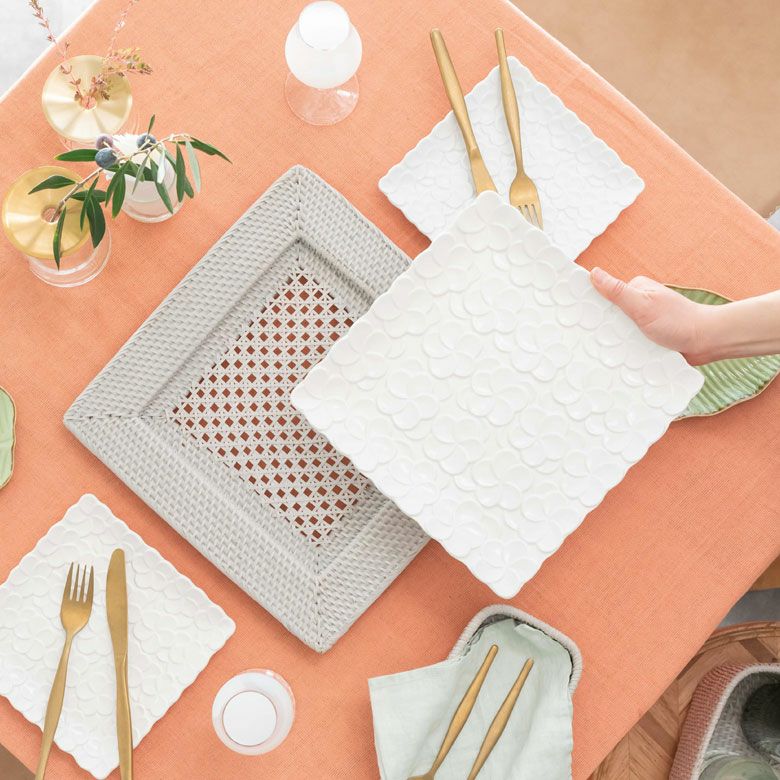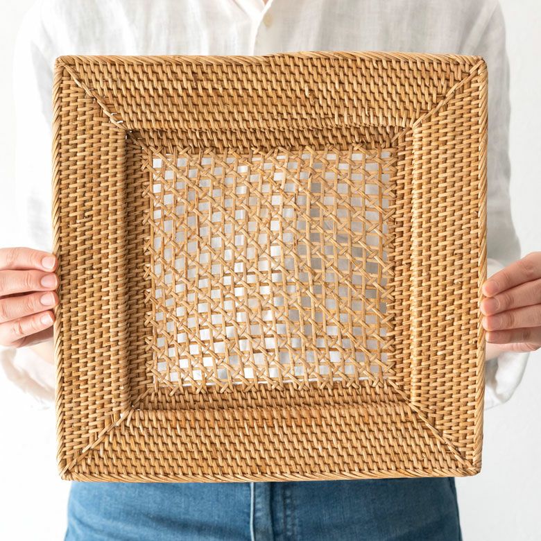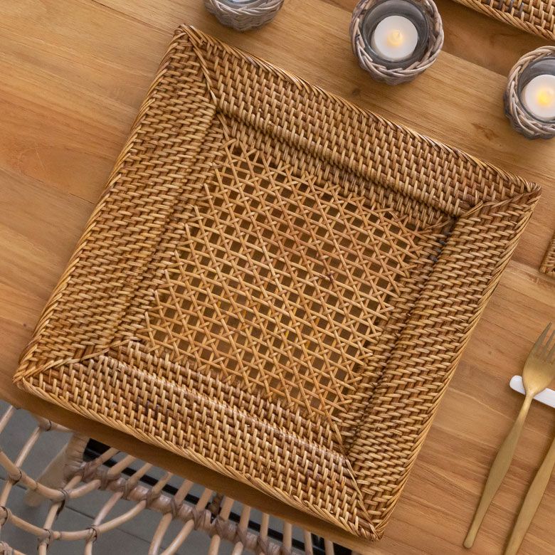 パーティー モダン チャージャープレート カフェ レストラン プレートトレイ アンダープレート プレート トレイ ラタン 籐 ホワイト ナチュラル 正方形 スクエア 約 W 32cm D 32cm H 2.5cm [7551]【 ランチョン マット プレイス プレース テーブルコーディネート キッチン 用品 小物 おしゃれ 北欧 リゾート バリ アジアン 雑貨 】