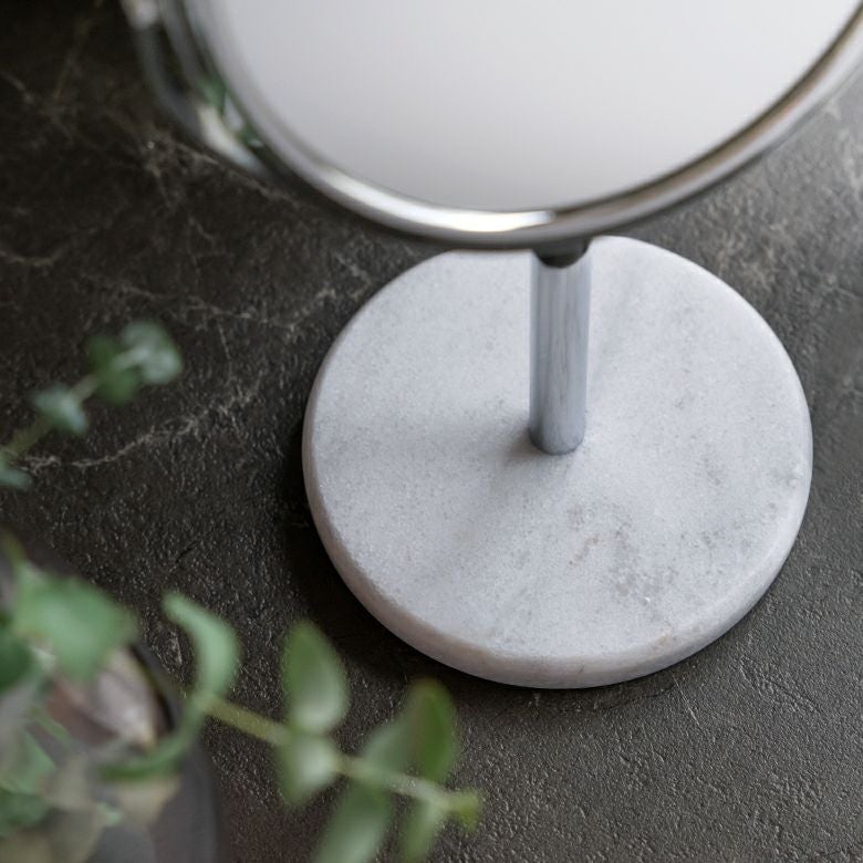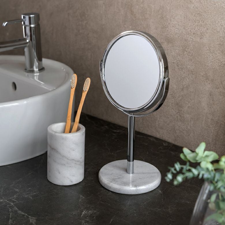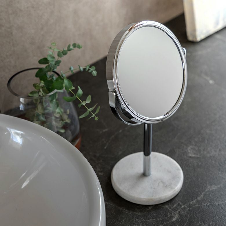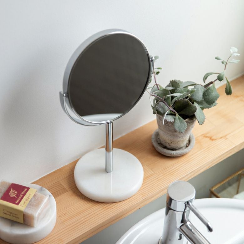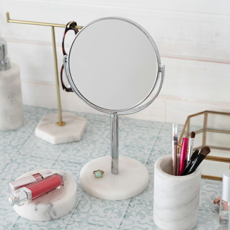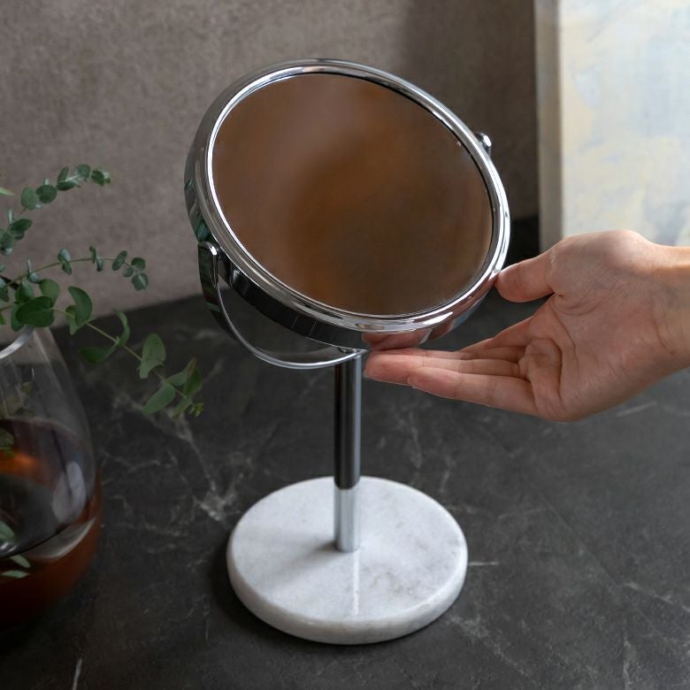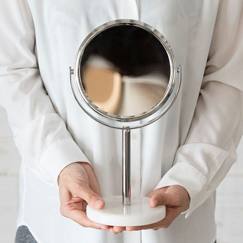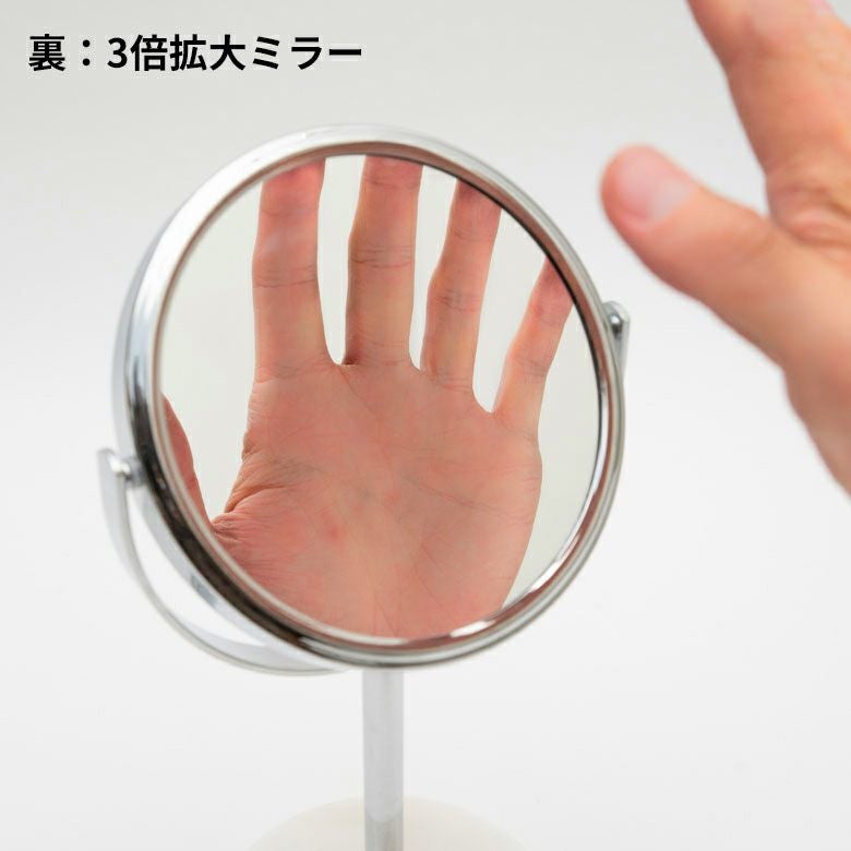 立て鏡 2Way 2面鏡 Zoom up コスメミラー 円型 小さめ 化粧鏡 卓上ミラー スタンド 丸型 両面鏡 等倍 + 3倍 拡大鏡 径約16.5cm 天然大理石 マーブル模様 ホワイト クレア [66735]【 スタンドミラー 鏡 卓上鏡 2面鏡 拡大鏡 メイク 化粧鏡 ラウンドミラー スタンド型 シルバー アジアン 雑貨 アジアン雑貨 ホテルライク リゾート 】