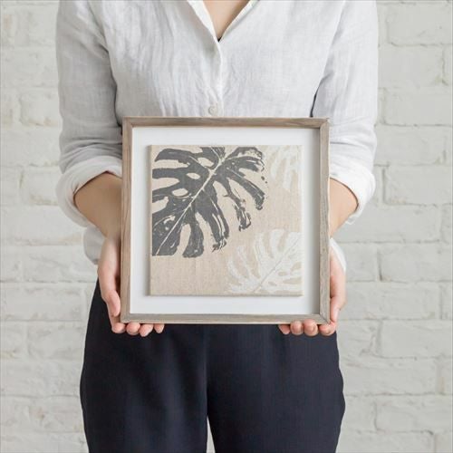 ウッドフレームとリネン生地でナチュラルなインテリアに。 モンステラをモチーフにしたリネンキャンバスのアートフレーム(66051)【アートパネル リーフパネル ウォールアート ウォールパネル おしゃれ インテリア ナチュラル アジアン ハワイ ハワイアン ボタニカル モンステラ リネン 麻 ビーチスタイル リゾート インテリア】