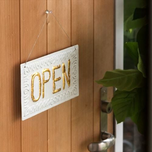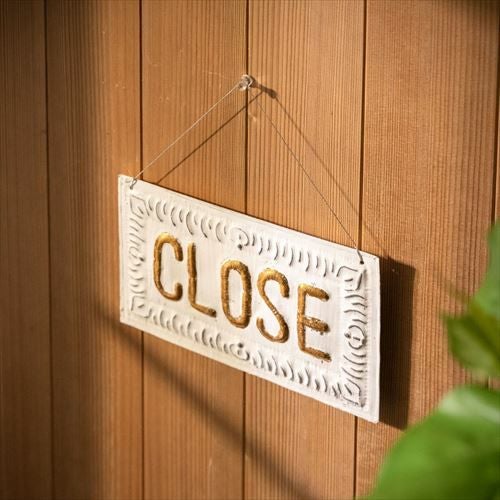 オープンクローズ リバーシブル 業務看板 ドア掛け 店舗用 【メール便対応】オープン & クローズ ドアプレート OPEN CLOSE 両面 ロゴ アルミ製 ホワイト [13799] 【 ド看板 営業中看板 サインボード ティンプレート OPEN & CLOSED ドアサイン 店舗プレート 開店 閉店 店舗ディスプレイ 営業中札 レストラン カフェ ショップ スパ 】