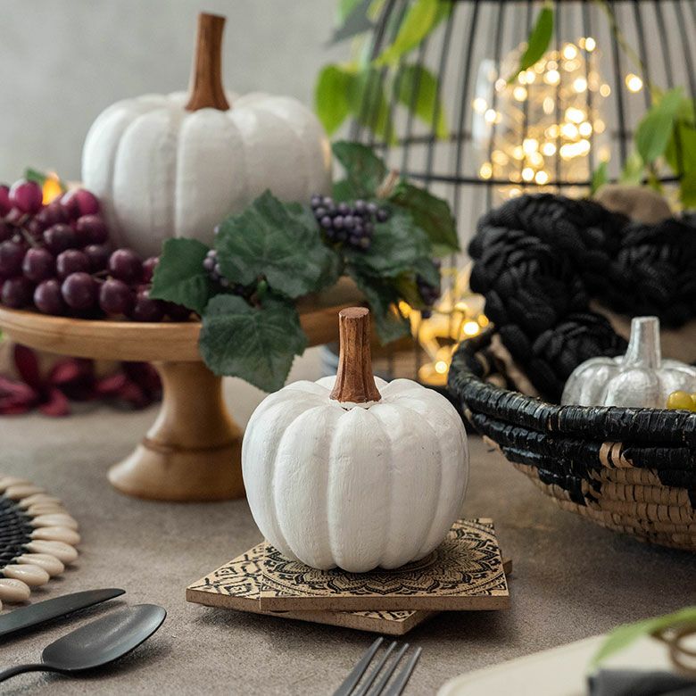 テーブルコーディネート ディスプレイ 手彫り 手作業 Xmas オブジェ パンプキン Sサイズ ホワイト 白 ハロウィン クリスマス W 10cm H 8cm D 11cm [13963]【 飾り 木彫り DIY かぼちゃ 置き物 デコレーション コーディネート ハンドメイド ナチュラルシック おしゃれ 北欧 オーナメント リゾート アジアン雑貨 バリ 】
