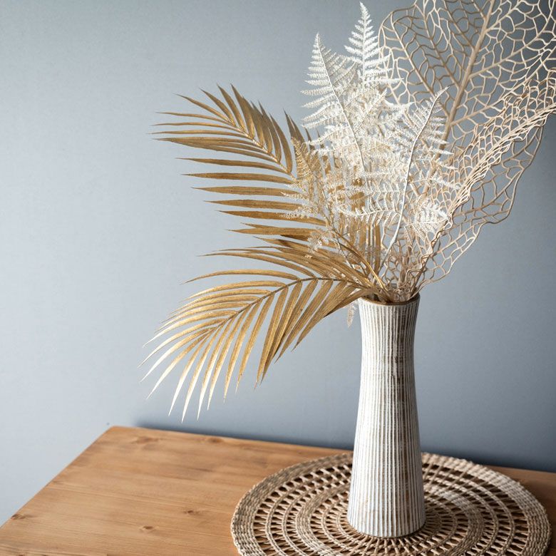 アーティフィシャルグリーン 室内装飾 お手入れ不要 パームリーフ フェイクグリーン ゴールド シルバー 52cm 2本セット [90373]【 アートプランツ アートグリーン 観葉植物 ヤシ メタリック 金 銀 造花 フラワーアレンジメント インテリア おしゃれ ボタニカル リゾート 雑貨 BOHO フェイク 植物 葉 造花 フラワー アート】
