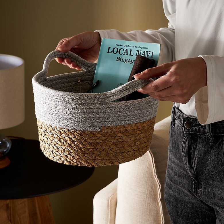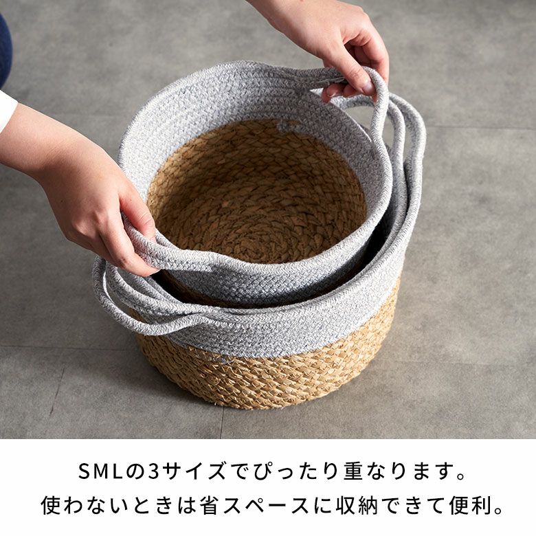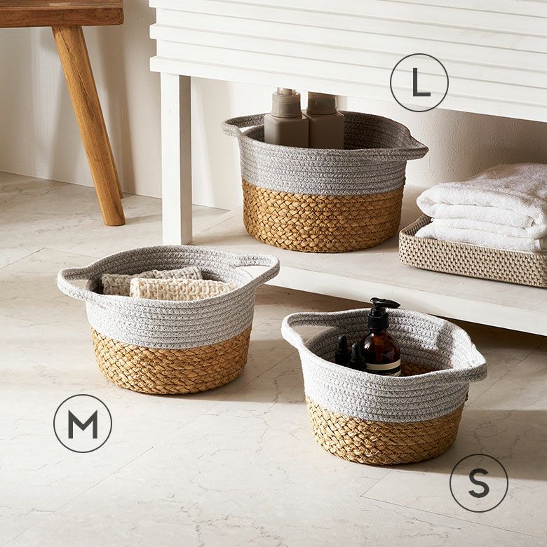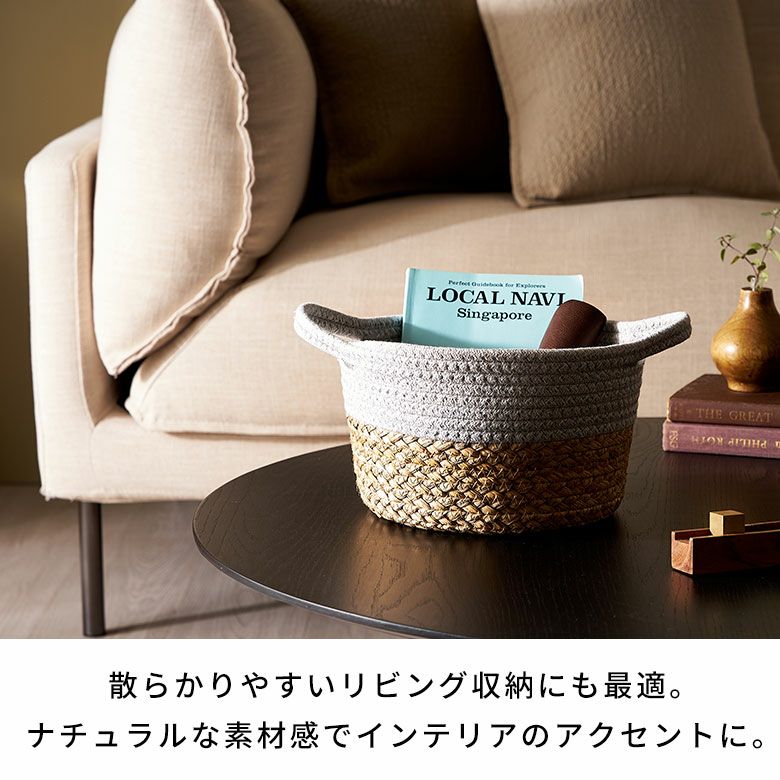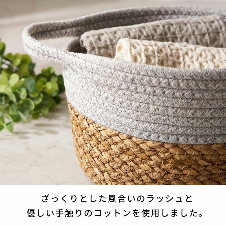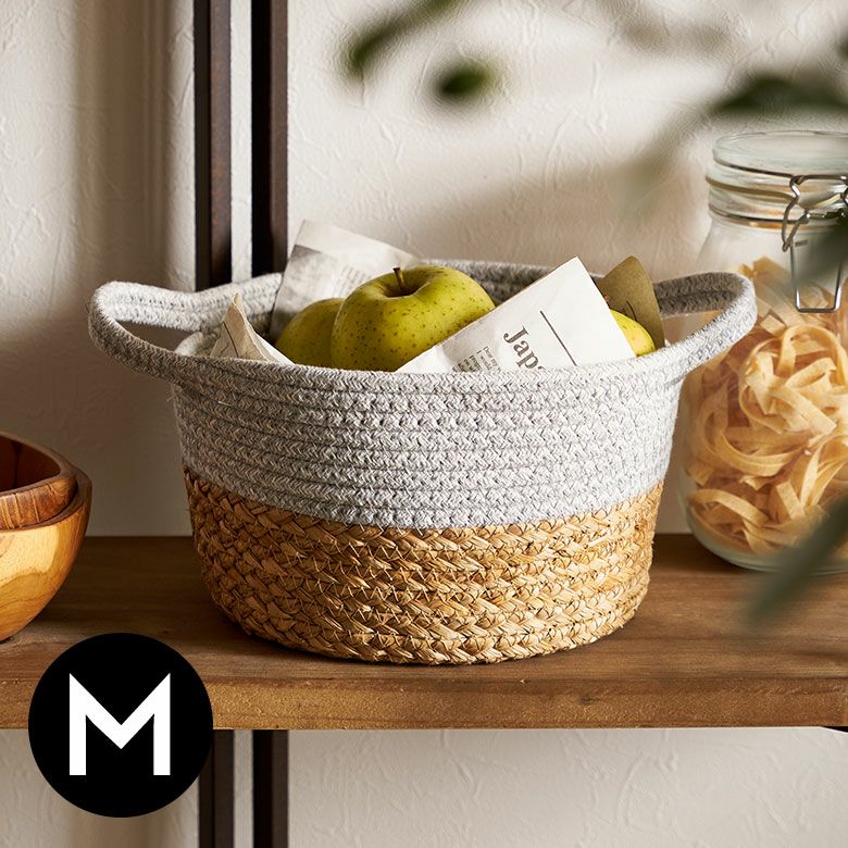 ロープバスケット 自立 ラウンド 小物収納 小物入れ コットンロープ リビング収納 おもちゃ収納 ランドリー タオル収納 リビング ダイニング キッチン 玄関 子供部屋 洗面所 プレゼント バスケット コットンロープ ラッシュ製 持ち手付き バイカラー Mサイズ 約 W 25 × D 25 × H 15 cm かごバスケット 収納 かご 籠 丸 円形 丸型 プランターカバー 鉢カバー 6号鉢対応 インテリア おしゃれ 北欧 観葉植物 アジアン 雑貨 アジアン雑貨 [67120]