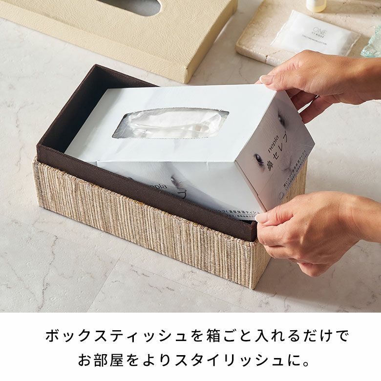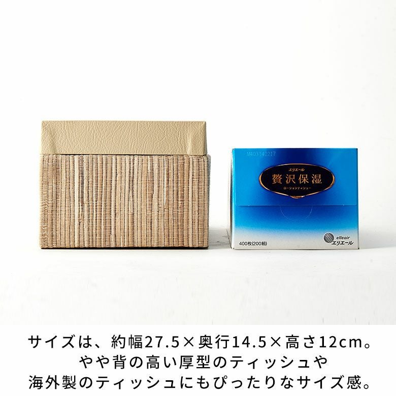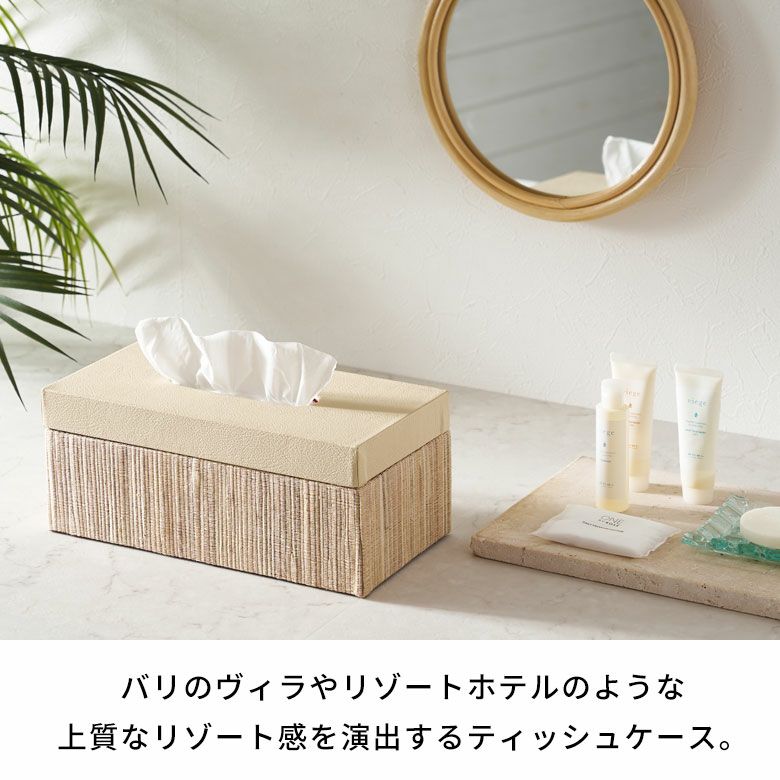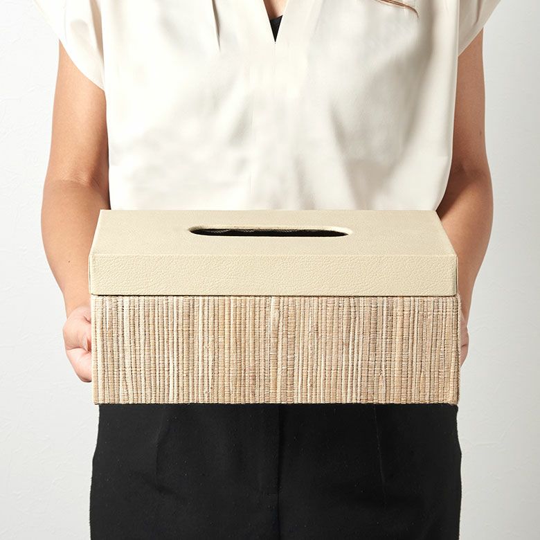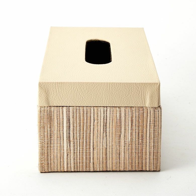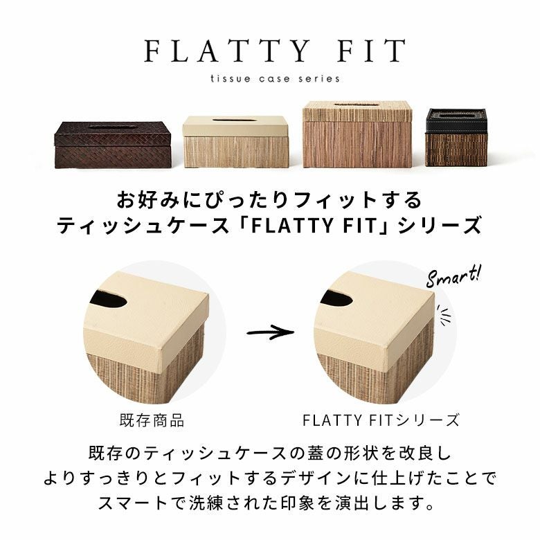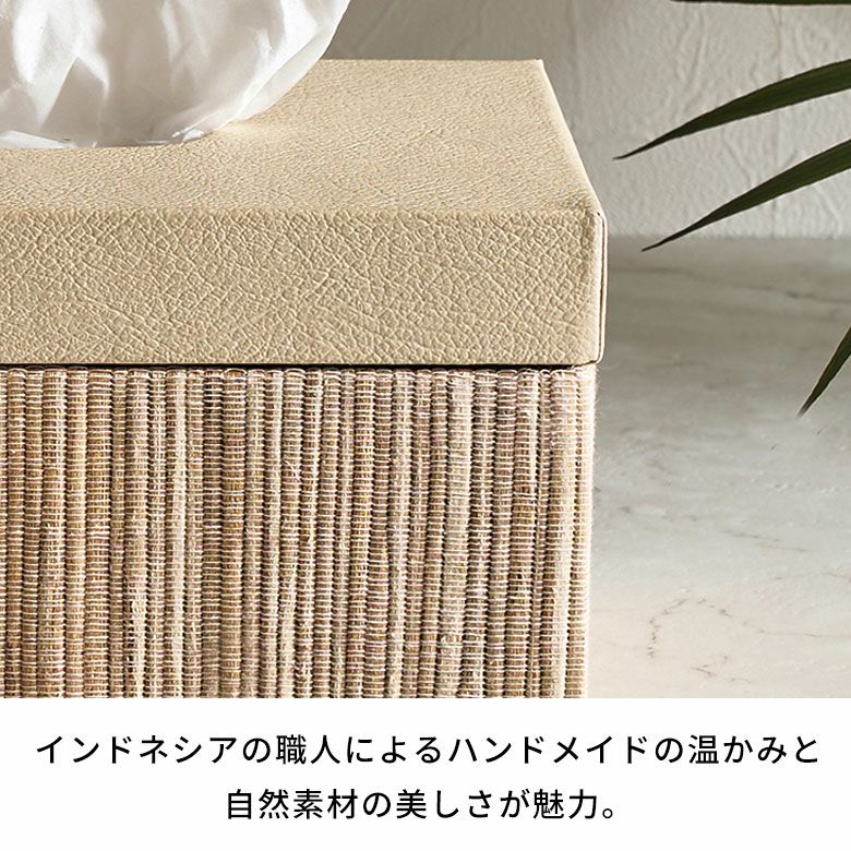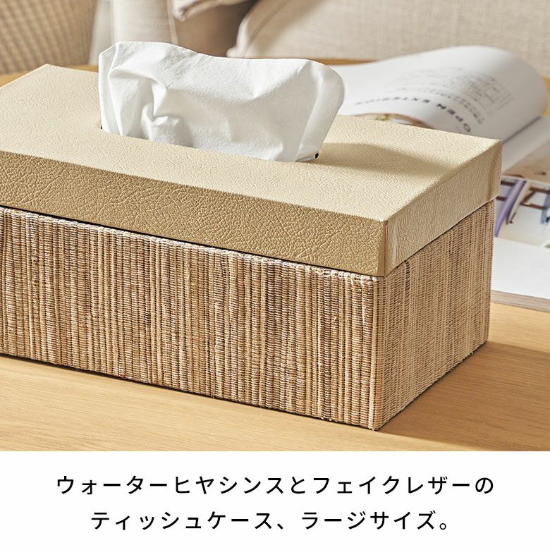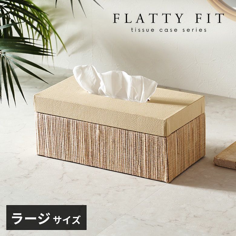 選べる天然素材と、豊富なサイズ展開であなたのお好みにぴったりフィットするティッシュケース【FLATTY FITシリーズ】新登場! フタとボディに段差がないフラットデザイン【FLATTY FITシリーズ】ウォーターヒヤシンス×フェイクレザーのアジアンティッシュケース ラージサイズ[14077]