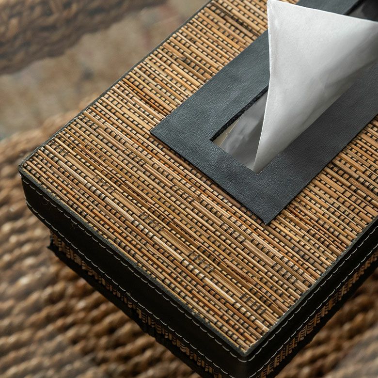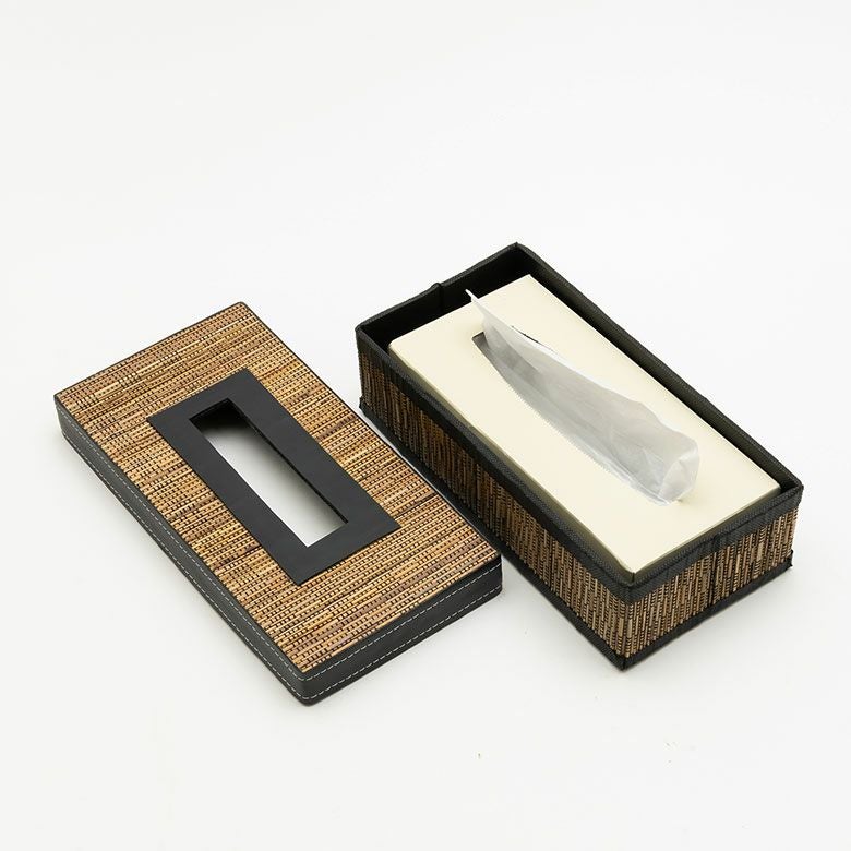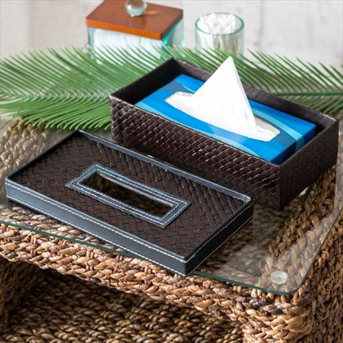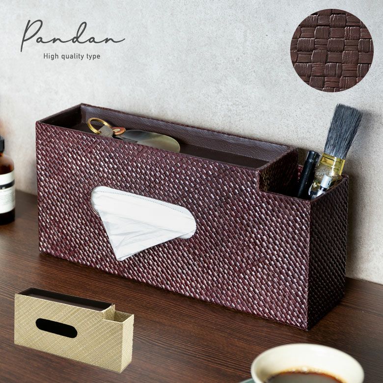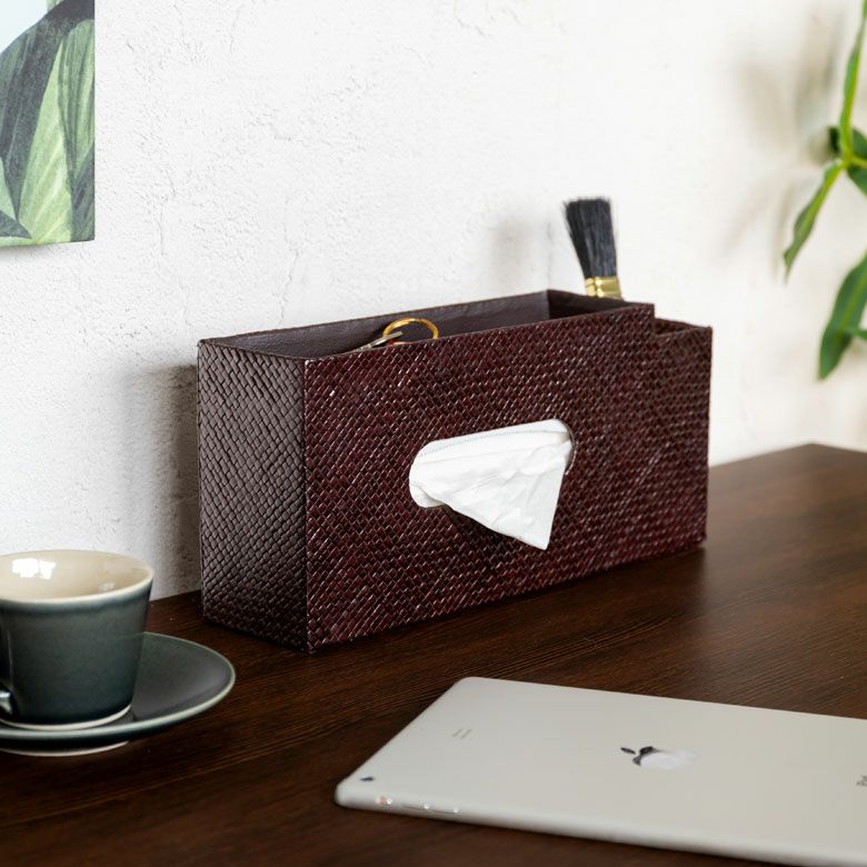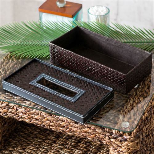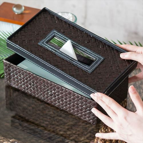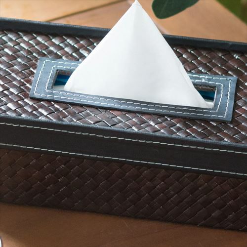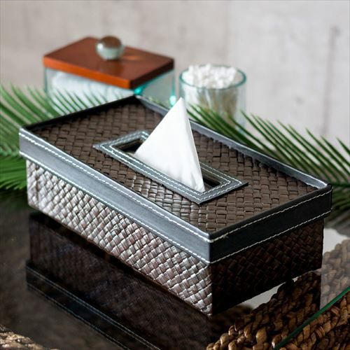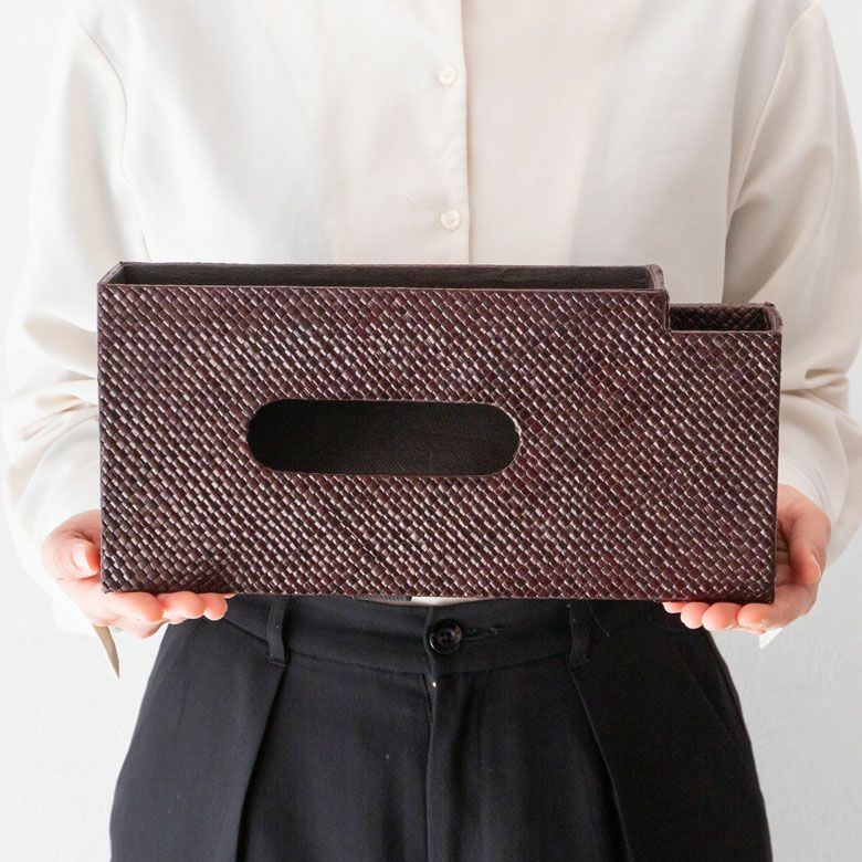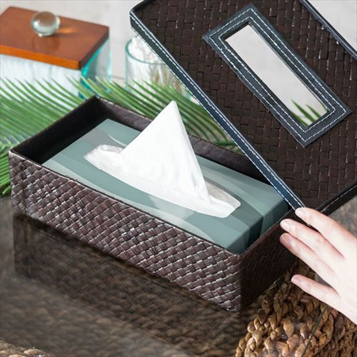 バリ島のティッシュケースカバー 新生活 パンダン製ポイントレザーのティッシュケースカバー ブラウン[10660]【バリ雑貨 アジア雑貨 アジアン雑貨 バリ島 ティッシュケース ティッシュカバー ティッシュホルダー ティッシュボックス カバー おしゃれ アジア工房 エスニック ケース ティッシュボックスカバー】