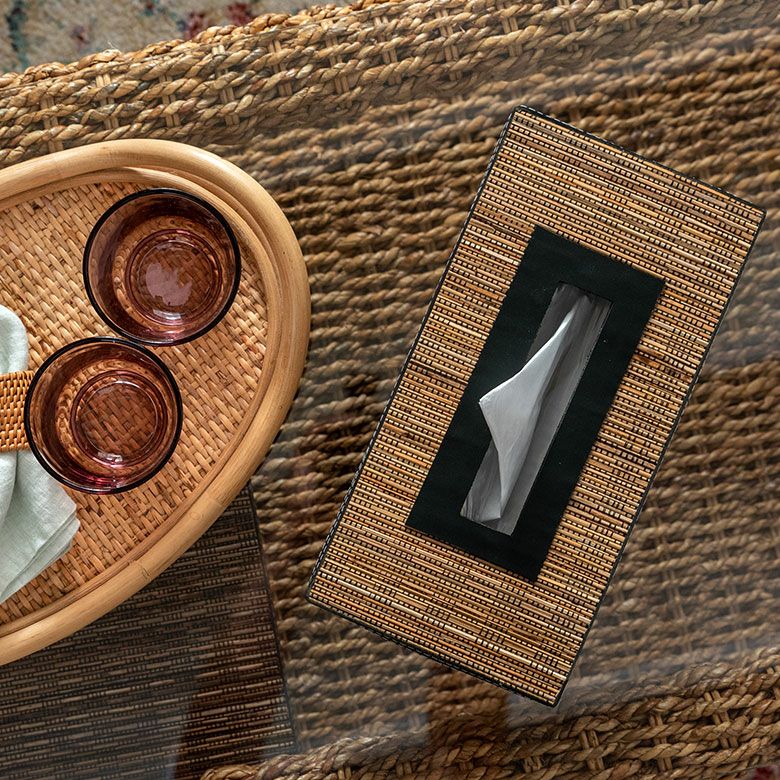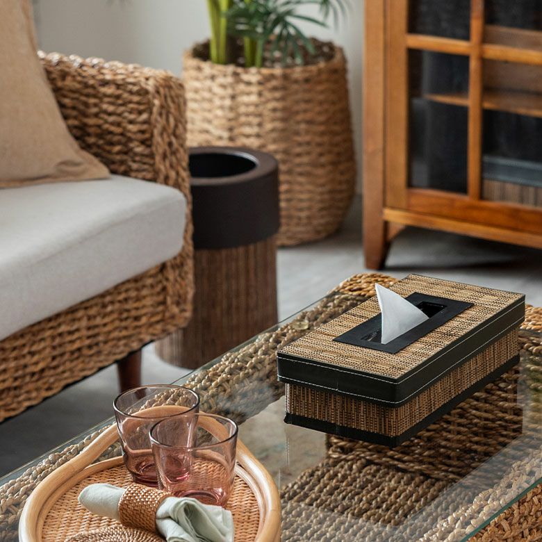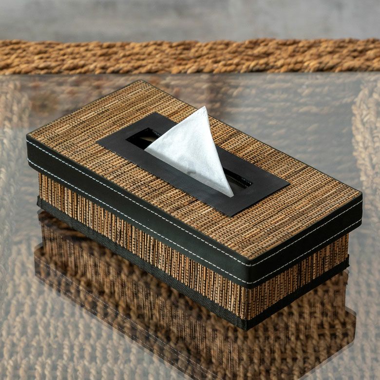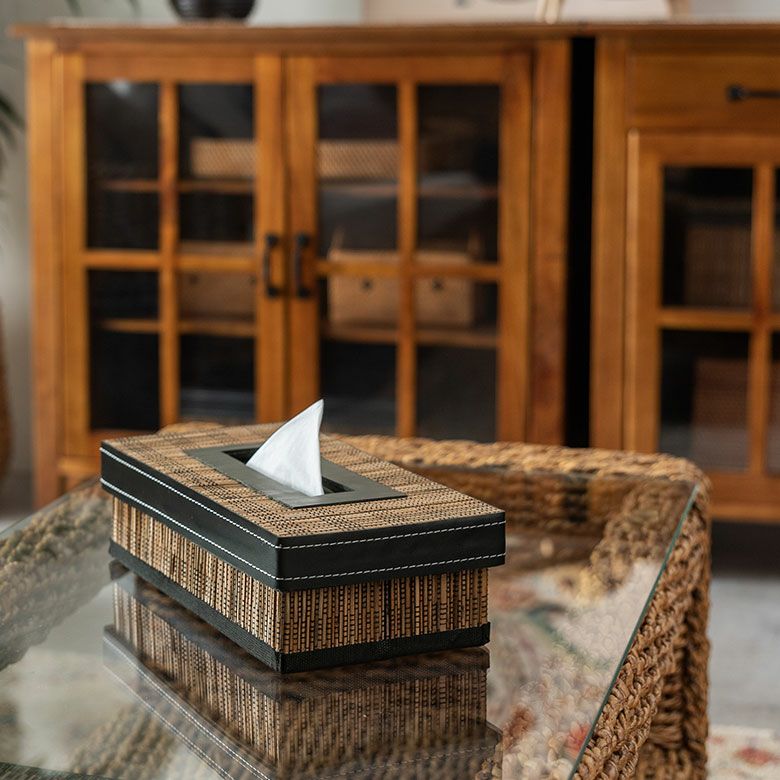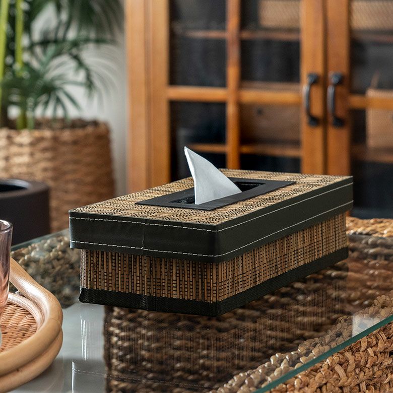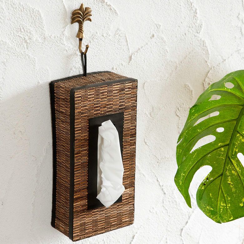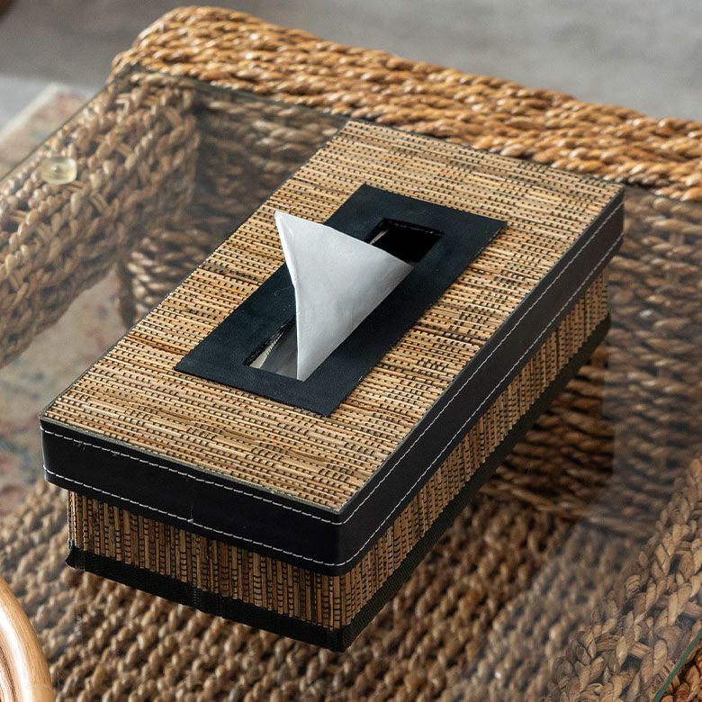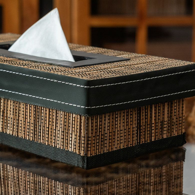 バリ島のティッシュケースカバー 新生活 パンダン製ポイントレザーのティッシュケースカバー ブラウン[10660]【バリ雑貨 アジア雑貨 アジアン雑貨 バリ島 ティッシュケース ティッシュカバー ティッシュホルダー ティッシュボックス カバー おしゃれ アジア工房 エスニック ケース ティッシュボックスカバー】