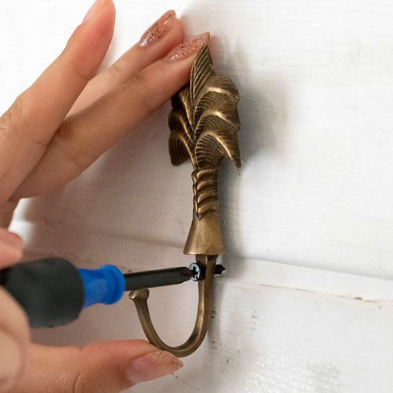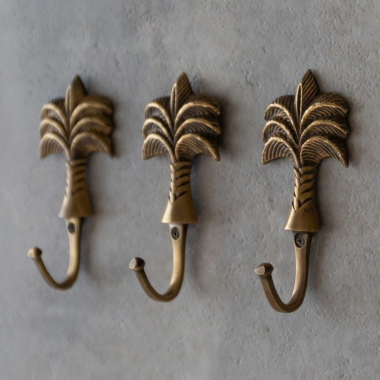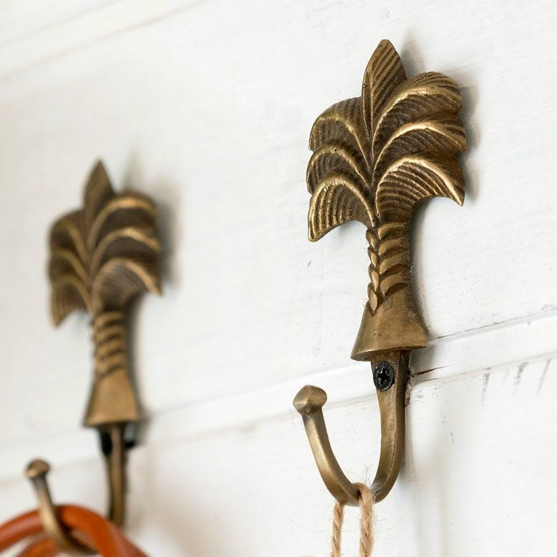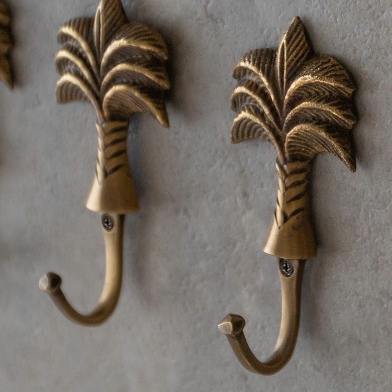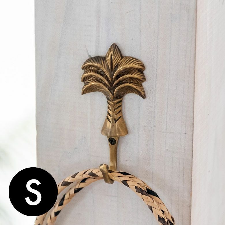 フック 壁掛け 引掛け ひっかけ 壁付け 壁面 小さい ミニ DIY 金属 金物 レトロ アンティーク風 おしゃれ インテリア ネジ 玄関 カーテン 棚 ラック キッチン 吊り下げ ハンガー 鍵 フック パームツリー型 アンティーク風 真鍮製 木ネジ付き 縦約9cm [13506] 【 壁掛けフック 壁フック ウォールフック シングルフック ヤシの木 ブロンズ アイアン 洗面所 トイレ ドア 壁掛け収納 アジアン 雑貨 アジアン雑貨 南国リゾート ハワイ バリ島 北欧 】