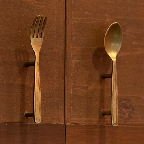 ドアノブ 真鍮ドアハンドル 扉用 引き出し用 ドア金具 【メール便対応】ドアハンドル スプーン フォーク型 アンティーク風 真鍮製 取っ手 [a-13750 a-13751]【 DIY ドア 引き戸 引き出し ブロンズ アイアン キッチン扉 ドアパーツ アジアン 雑貨 アジアン雑貨 南国リゾート ハワイ バリ島 】
