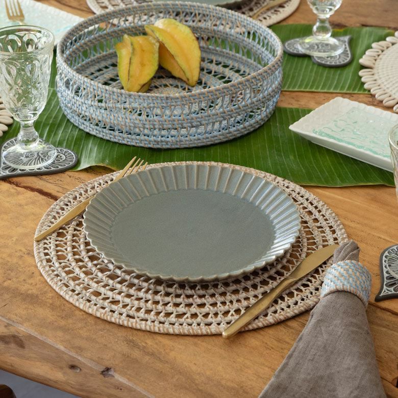 インテリア エスニック リゾート テーブルコーディネート 食卓 ランチョンマット ラタン製 ランチマット プレースマット プレイスマット テーブルウェア 径約35cm 高さ0.5cm [13828]【 キッチン雑貨 キッチン小物 ランチョン おしゃれ ダイニング 透かし編み アジアン雑貨 アジア雑貨 バリ島 】