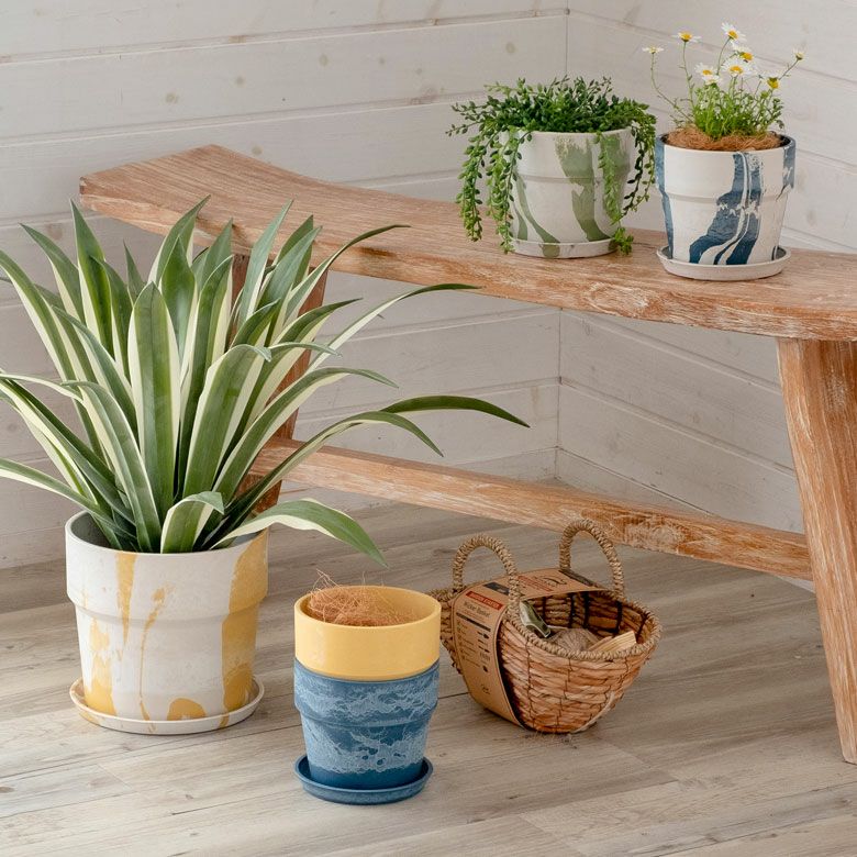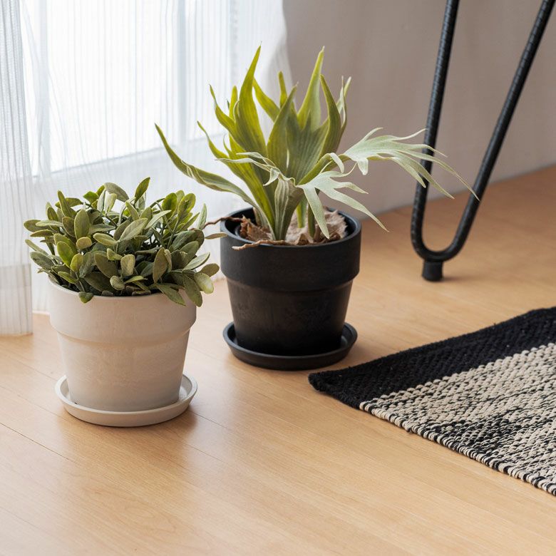 ポット カラフル モノトーン アウトドア ガーデン かわいい 植木鉢 プランツポット 4号鉢 プラスチック 無地 受け皿付き [90308]【 プランター 直径13.5cm 4号 鉢カバー プランターカバー ガーデニング 園芸 花 観葉植物 ベランダ おしゃれ ブラック アイボリー ホワイト ブラウン ピンク イエロー ブルー 底穴あり】