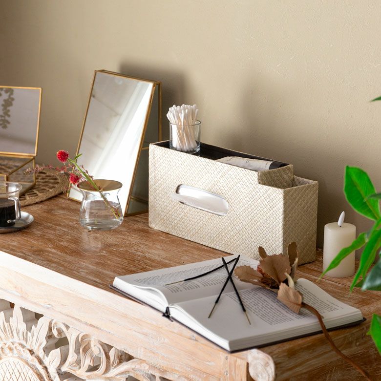 ティッシュホルダー ハンドメイド 天然素材 ダイニング リビング ティッシュケース ティッシュボックス ティッシュボックスカバー ティッシュカバー パンダン ブラウン ナチュラル W 32cm D 8.2cm H 15cm [13971]【 ティッシュ ボックス ケース カバー ホルダー 車 おしゃれ 北欧 リゾート モダン エスニック バリ アジアン 雑貨 】