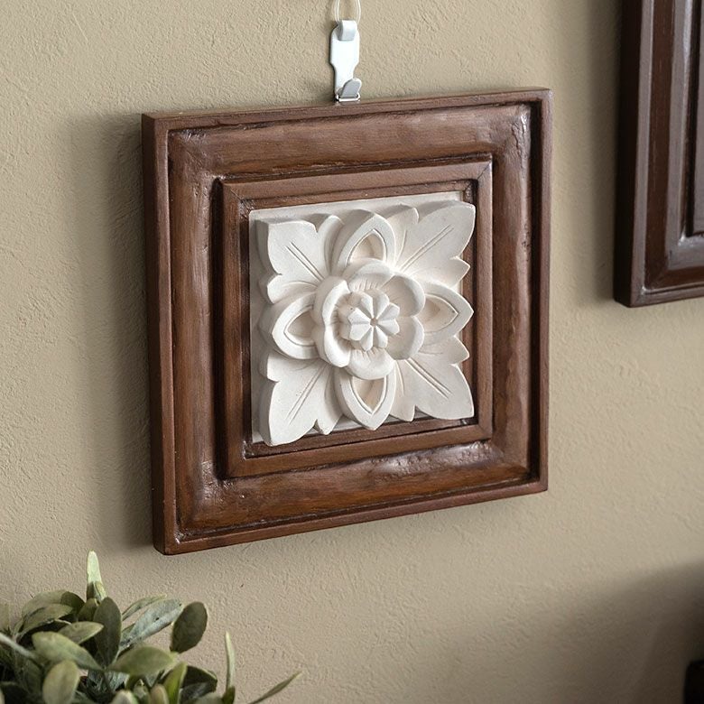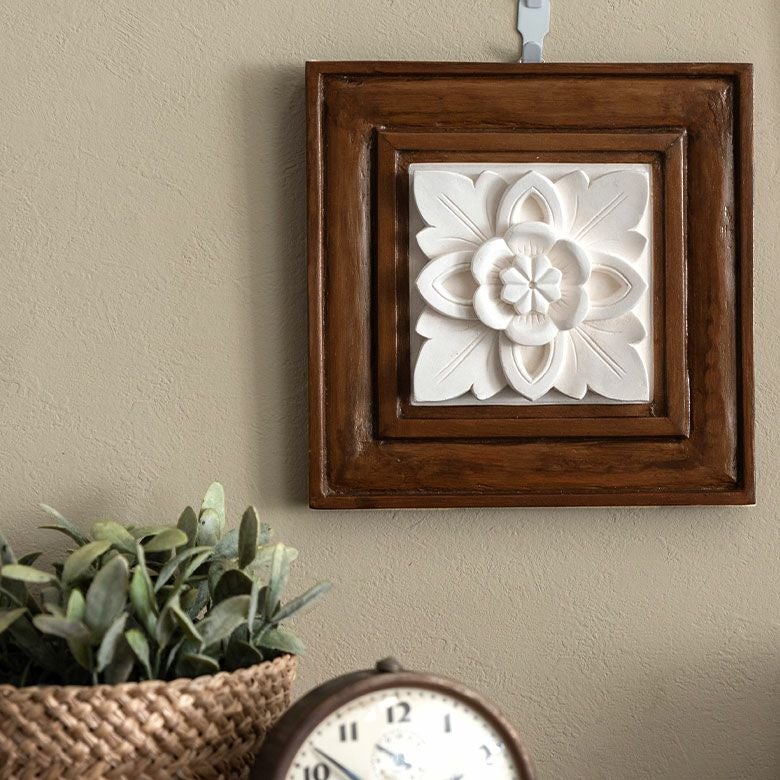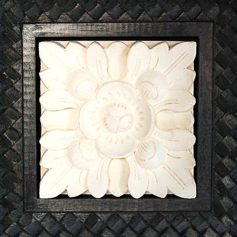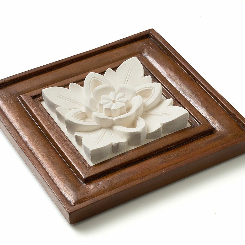 バリ島のリゾートホテルのインテリアのようにお部屋の壁を飾る立体的なアジアン彫刻。バリ島の人気アジアン雑貨 木製フレーム付きフラワーモチーフのストーンレリーフ 壁掛け アート おしゃれ かわいい アジアン雑貨 アジア雑貨 インテリア ウォールデコレーション オブジェ タイル 壁飾り 置物 花 ハワイアン雑貨 バリ雑貨 モダンアート モダン インテリアアート [11428]