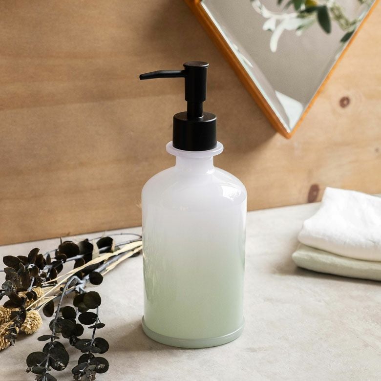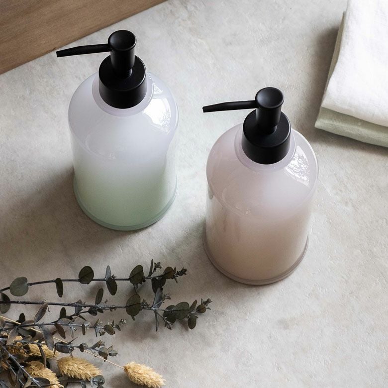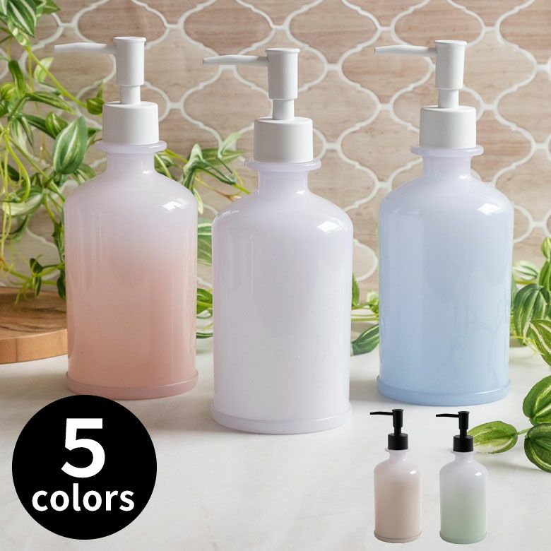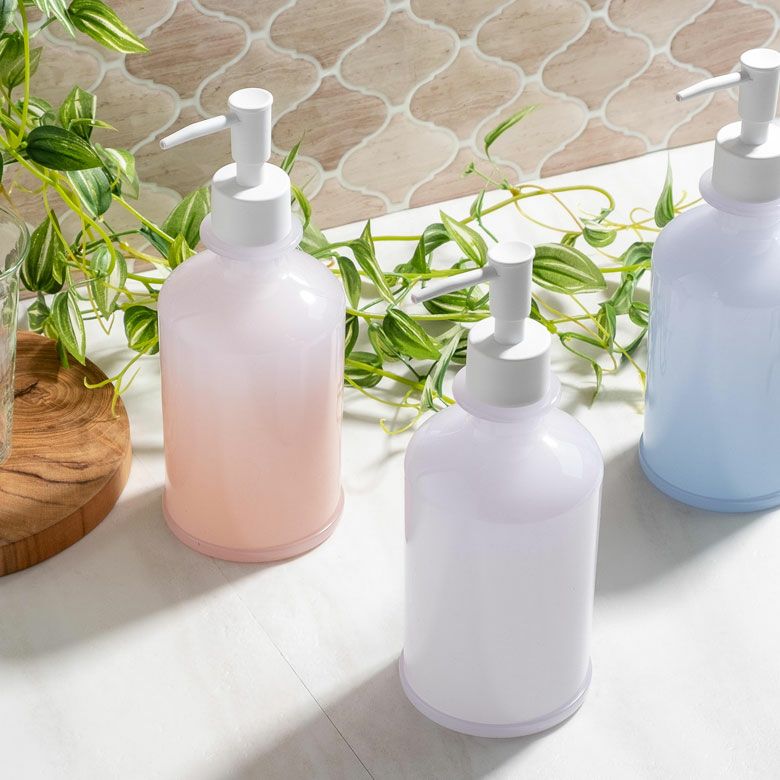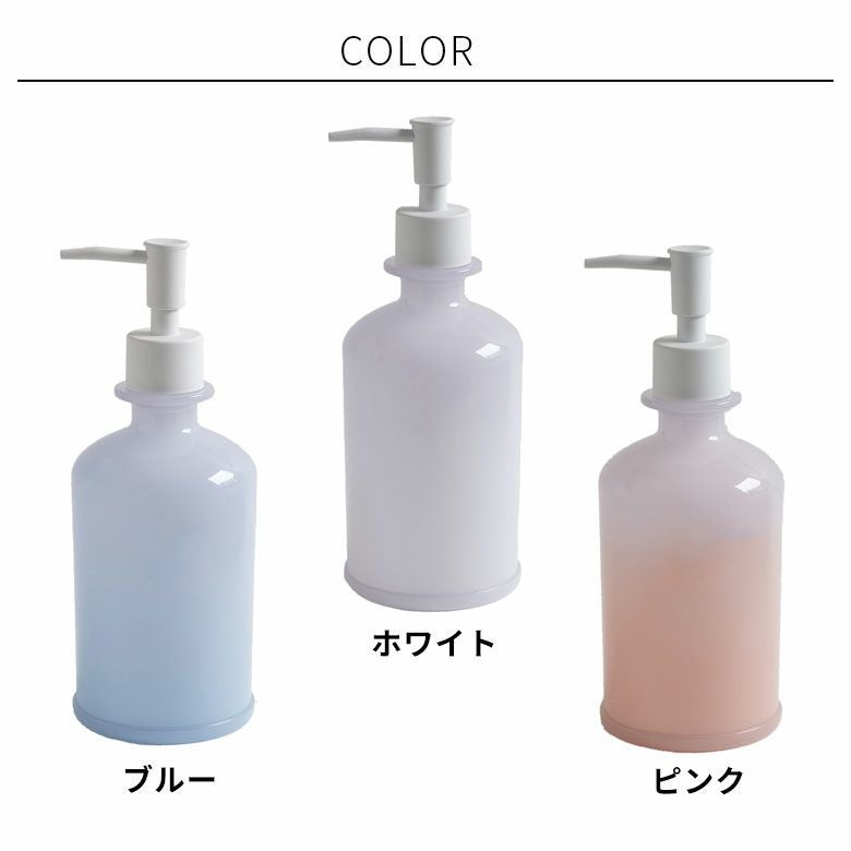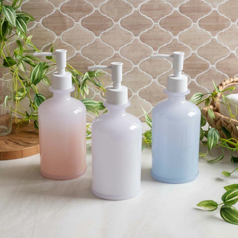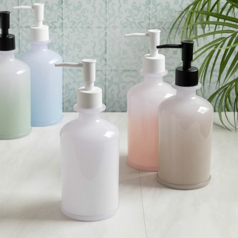 ボトル シャンプー リンス ボディーソープ プレゼント 新築祝い ディスペンサー ソープディスペンサー 480ml プラスチック 直径 8cm 高さ 21cm グラデーション [90333]【 ソープボトル 詰め替えボトル バスアイテム グリーン グレー ブルー ピンク ホワイト グラデーションカラー 浴室 洗面 キッチン 水回り おしゃれ エコ】