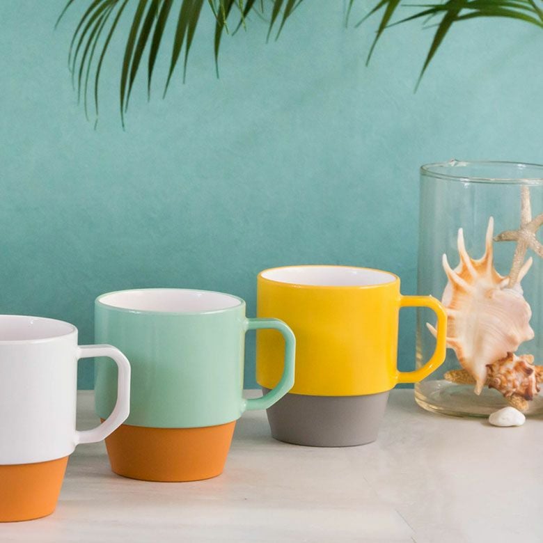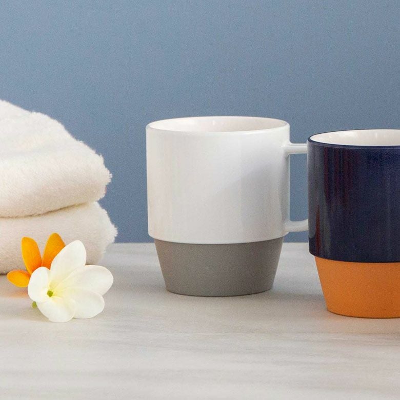 うがいカップ バス用品 新築祝い 生活雑貨 1人暮らし 陶器風 コップ うがいコップ 370ml 持ち手付き プラスチック バイカラー [90336]【 カップ バスアイテム ハンドル付き イエロー ホワイト グレー ブルー ネイビー ブラウン テラコッタ 洗面 おしゃれ モダン プレゼント ギフト バスグッズ】