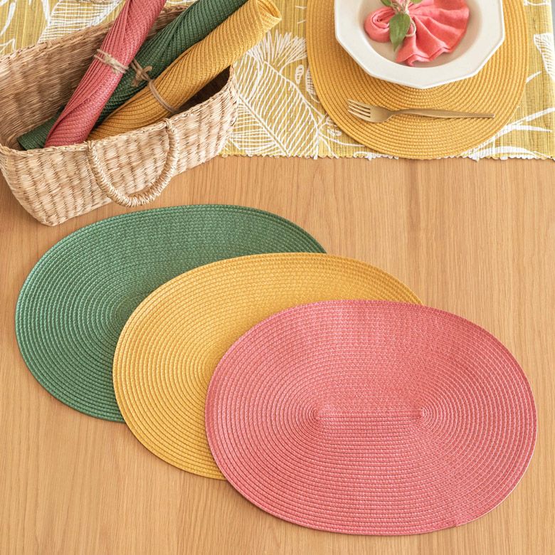 撥水 洗える 無地 シンプル こども 子供 楕円 パーティー 【メール便対応】【コースタープレゼント】ランチョンマット オーバル 4枚セット プレースマット W 40cm D 30cm トロピカル カラフル カラー 3色 [lm-67003]【 Riche リッシュ ランチマット テーブル コーディネート コーデ 北欧 おしゃれ リゾート アジアン 雑貨 】