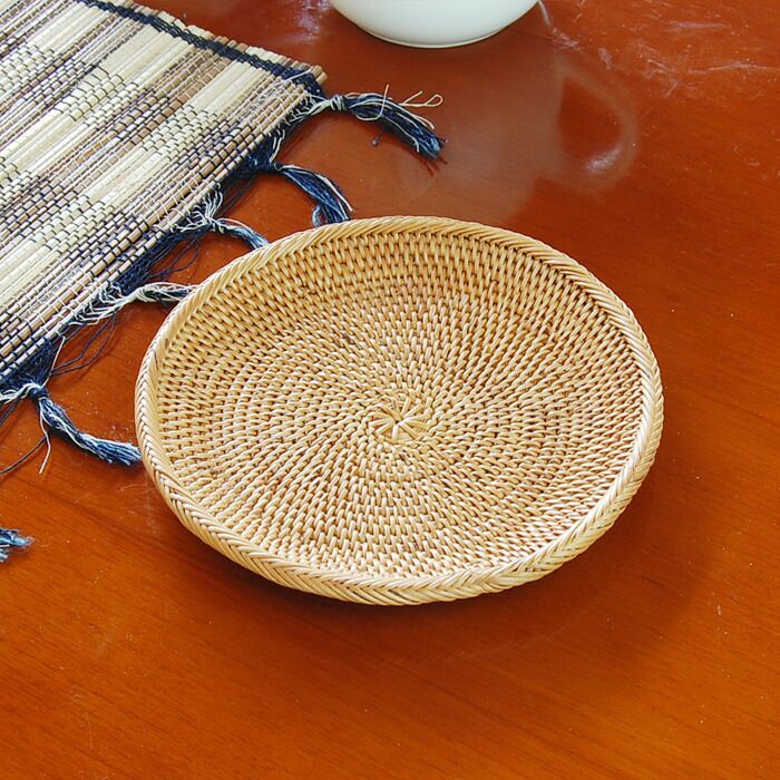 デコレーショントレイ ディスプレイトレイ キッチン リビング ダイニング お盆 丸盆 カフェトレイ 天然素材 店舗 カフェ レストラン サステナブル サスティナブル ギフト プレゼント トレイ ラタン 籐 約 W 27cm D 27cm H 1.5cm ナチュラル ラウンド 丸 円形 トレー デコレーション ディスプレイ カフェトレー ティートレー コーヒートレー ミニトレー リゾートインテリア アジアンリゾート おしゃれ 北欧 リゾート 雑貨 インテリア アジアン [51345]
