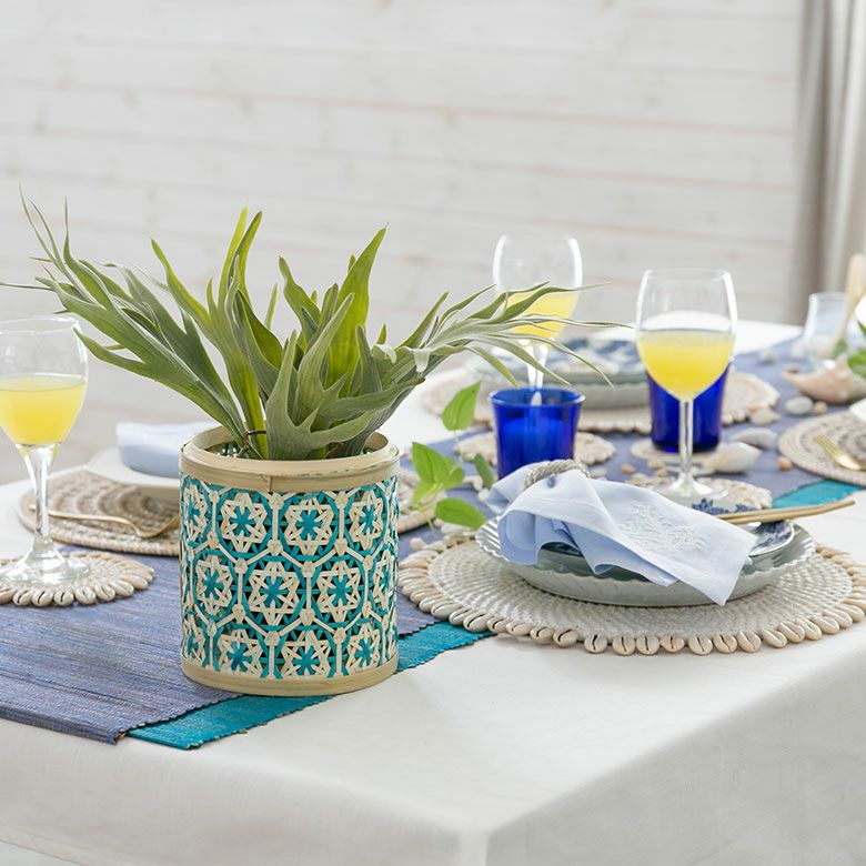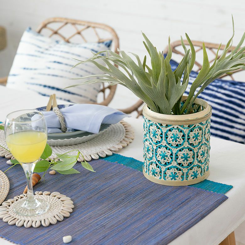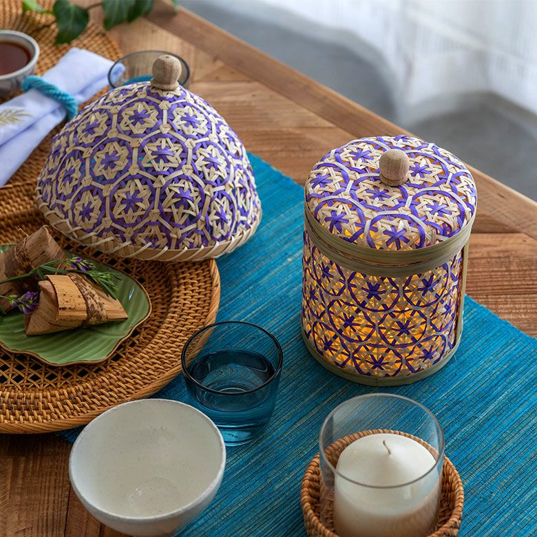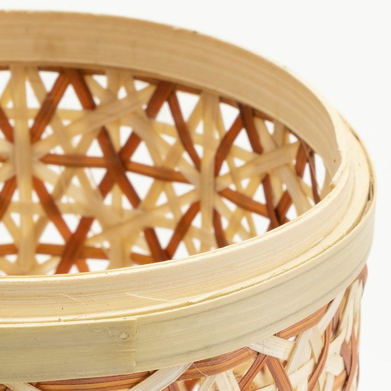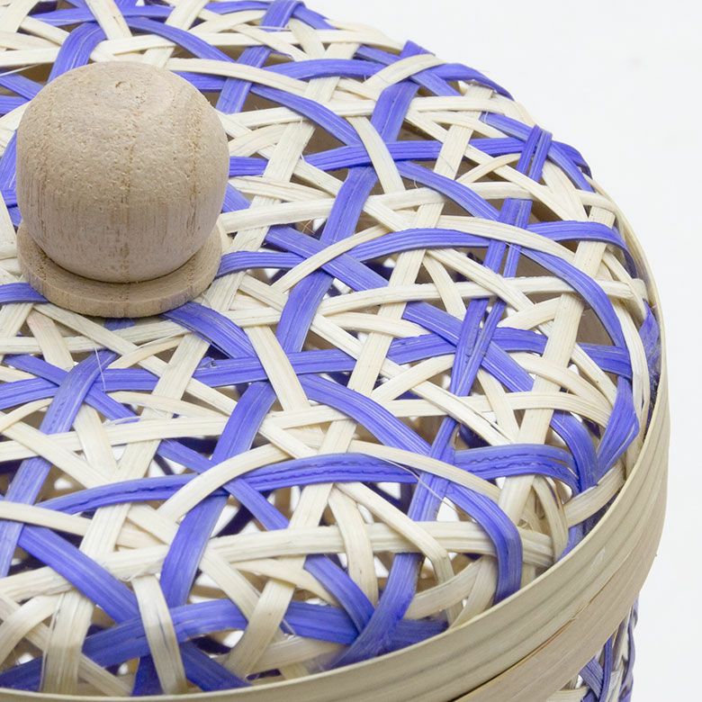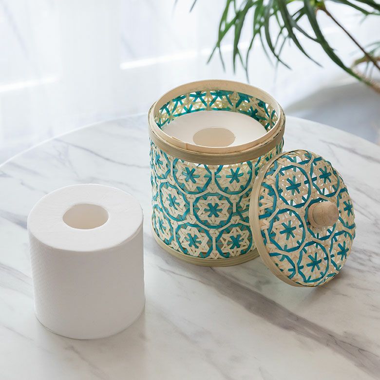 小物入れ 卓上 ダストボックス ゴミ箱 プランターカバー ケース バンブー 蓋つき キャニスター 直径 約 14cm ブラウン ブラック アイボリー ライトブルー パープル [51312]【 竹 収納 花柄 花編み 円 サークル 丸 トイレットペーパー レトロ おしゃれ カラフル ベトナム エスニック アジアン 雑貨 チェーホア Tre hoa 】
