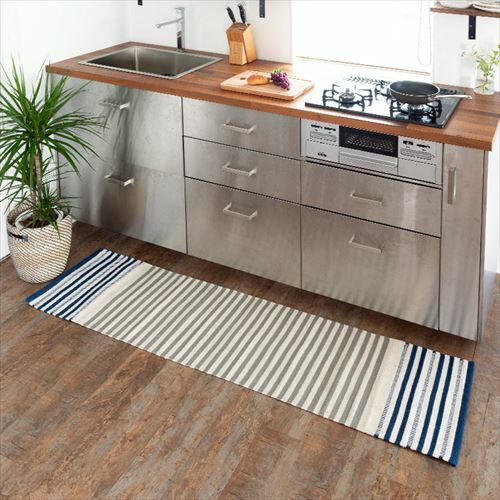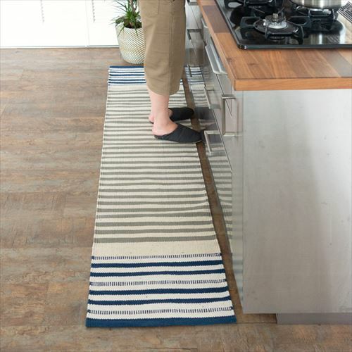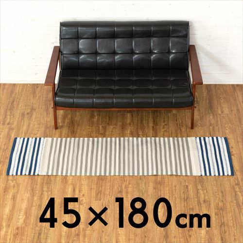 キリムラグ ラグマット インド綿 青 エスニックラグ ネイティブ キッチンマット コットン ラグマット ボーダー柄 綿100% 45×180cm ブルー [34303]【 コットンキリム おしゃれ ラグ カーペット ストライプ柄 台所 キッチン 敷物 ベッド 横 キリム風ラグ 玄関マット 夏用 オールシーズン 綿 インテリア アジアンラグ アジアン 雑貨 】