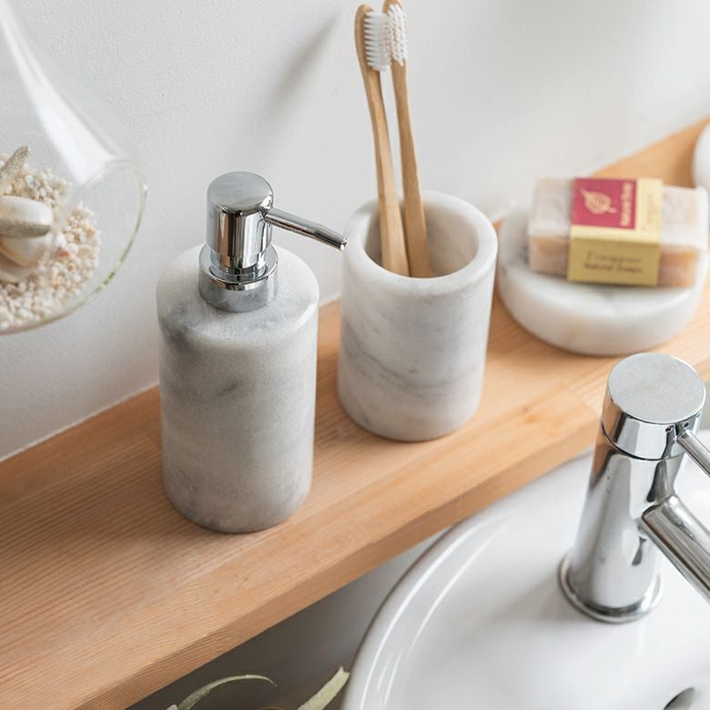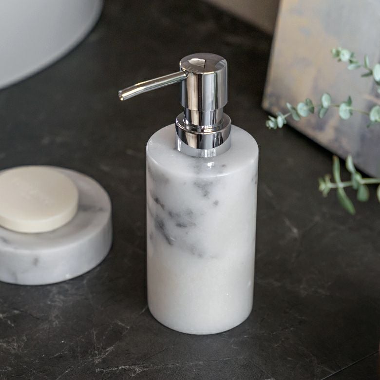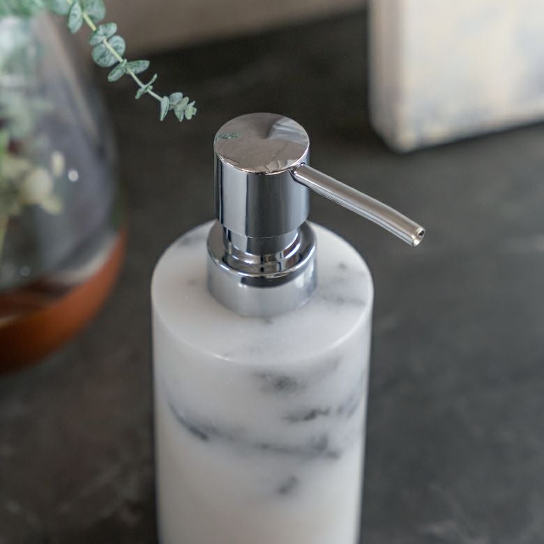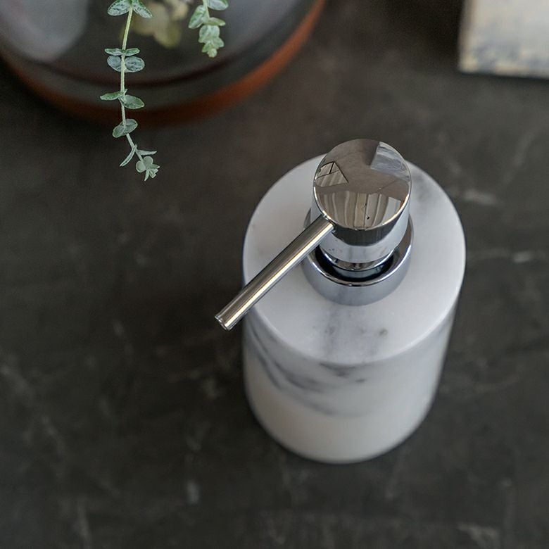 詰め替えボトル 詰め替え容器 ハンドソープボトル ポンプボトル ソープディスペンサー ボトル 筒形 天然大理石 160ml マーブル模様 ホワイト クレア [66731]【 ディスペンサー マーブル柄 ソープボトル ハンドソープ 洗剤 液体 容器 ポンプ おしゃれ シンプル 高級感 アジアン 雑貨 アジアン雑貨 ホテルライク ギフト プレゼント 】