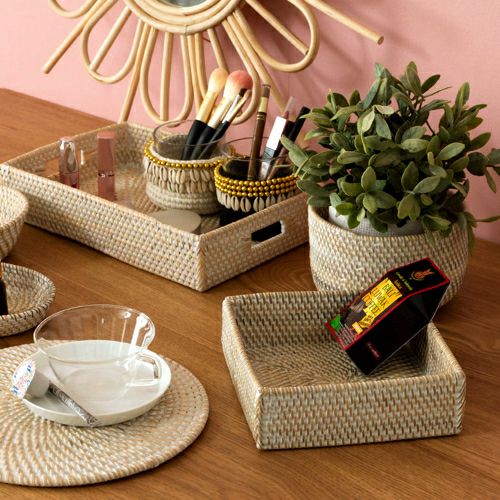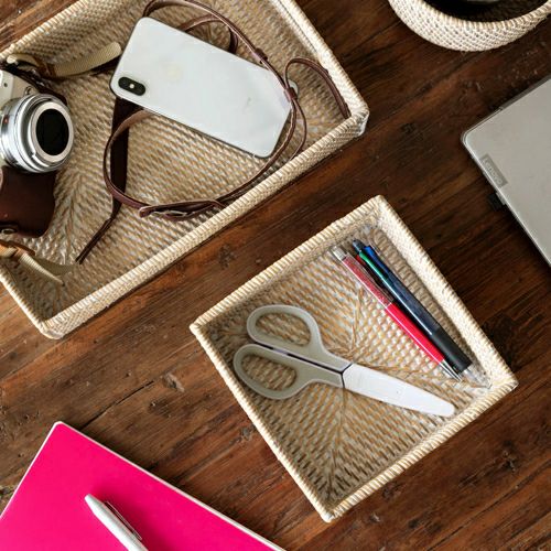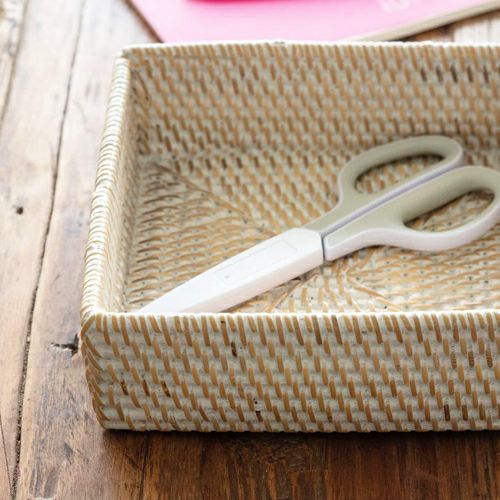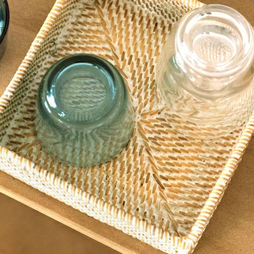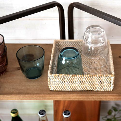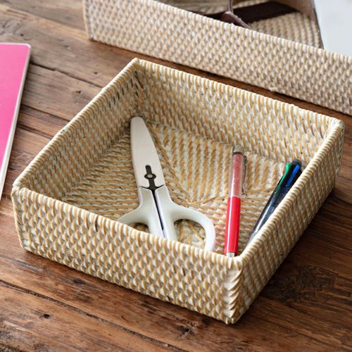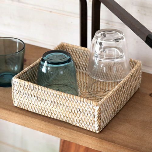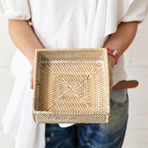 収納ボックス 整理整頓 小物収納 収納バスケット 収納バスケット ラタン製 ホワイトウォッシュ 正方形 スクエア型 約17.5×17.5cm 深さ5.5cm [13464]【 収納バスケット 小物収納 ラタンバスケット 小物入れ アメニティバスケット トレイバスケット アジアン雑貨 おしゃれ 北欧 バリ島 】