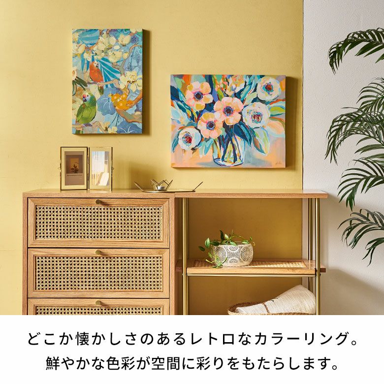 ウォール 壁 玄関 寝室 リビング ダイニング 店舗 カフェ レストラン ウォールアート キャンバスアート キャンバス デコレーション パネル 装飾 飾り プリント ギフト プレゼント アートパネル インコ 鳥 フラワー 花 キャンパス パネル 約 W 30cm D 45cm H 2.7cm 植物 アート キャンパスアート レトロ カラフル 絵画 壁掛け 壁飾り アートボード ウォール デコレーション インテリア おしゃれ 北欧 リゾート 雑貨 海外インテリア アジアン [67146]