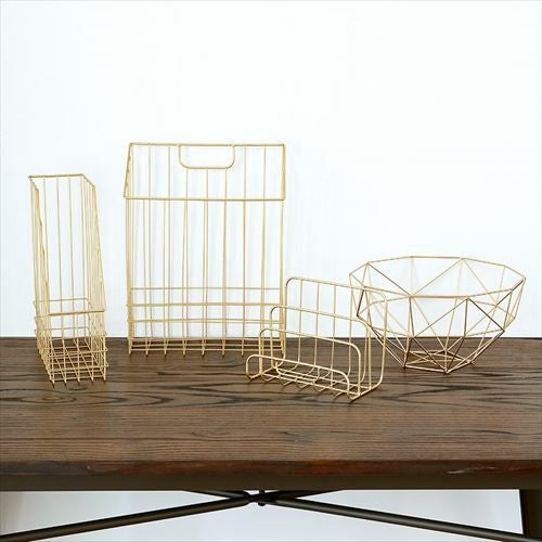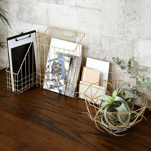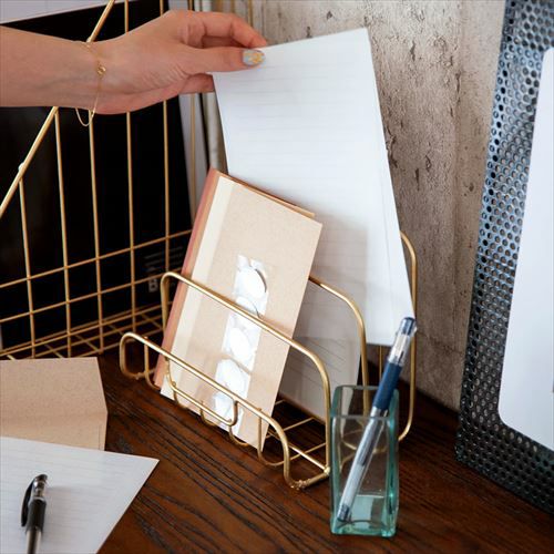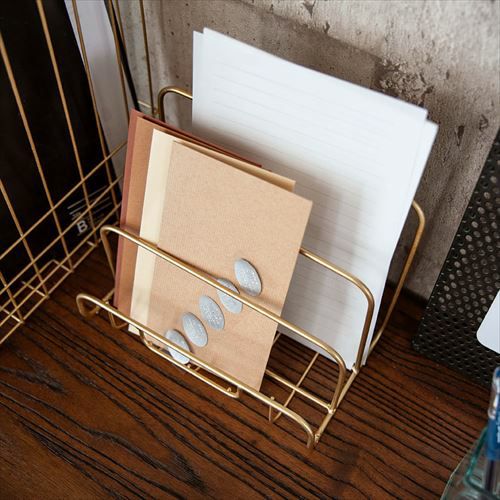 ファイルボックス 雑誌収納 本立て 書類 郵便物 整理 手紙 レターホルダー 卓上 仕切り付き ワイヤー ゴールド 幅19cm [66589]【 レターラック マガジンラック ファイルスタンド マガジンスタンド おしゃれ 可愛い 手紙 請求書 メタル ブックスタンド パンフレットスタンド ファイルケース アジアン雑貨 】